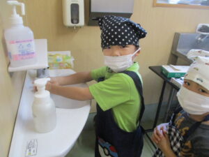 エプロン・三角巾・マスクを身につけて、準備OK!(^^)!