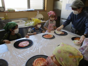 今日の昼食は、自分たちが作ったピザ🍕をいただきました😋