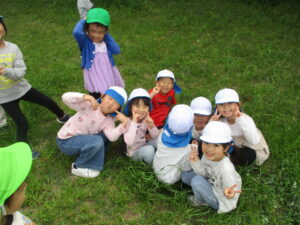 ダンゴムシやバッタなど、小さな生き物探しや、シロツメクサの冠にブレスレット等々…