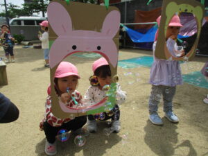 園庭では、たくさんのしゃぼんだまアイテムがずら~り!