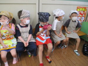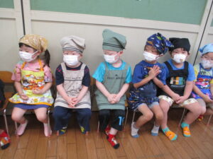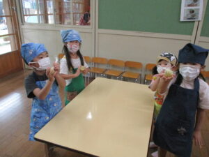 エプロン・三角巾・マスクを身につけて、手洗いを済ませて準備OK!!