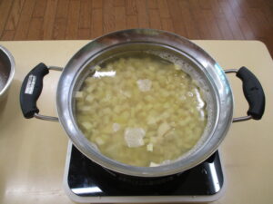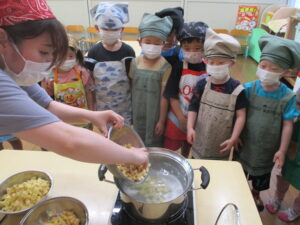 みんなが切ったさつま芋を茹でましょう!