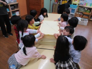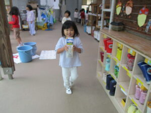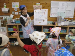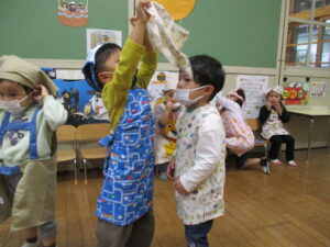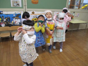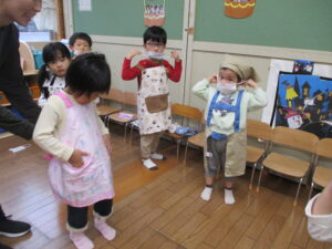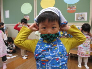 なんと!!りす組さん、エプロンも三角巾も、ほとんど自分で着ることができてびっくり!