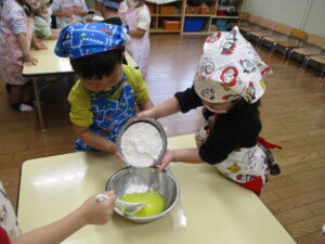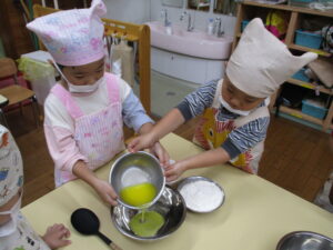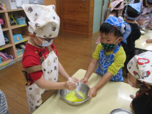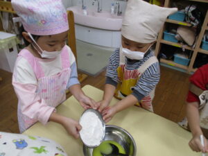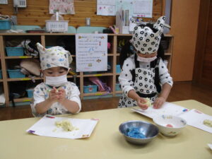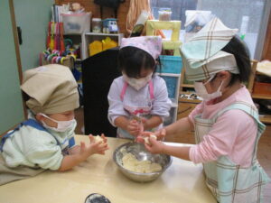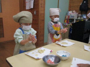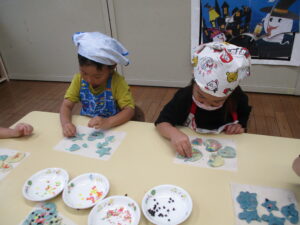りす組がレストランごっこで、クッキー作りに挑戦しました!