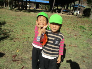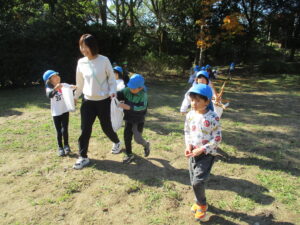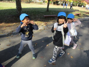 りす組は、どんぐり等の木の実を拾いに散策へ!