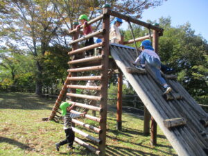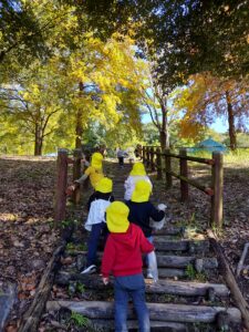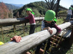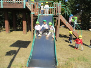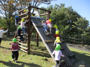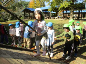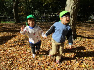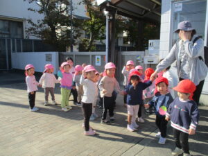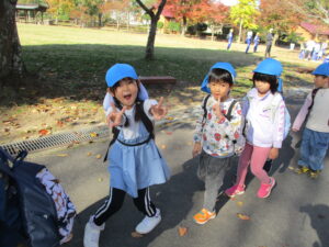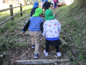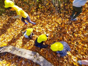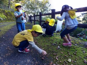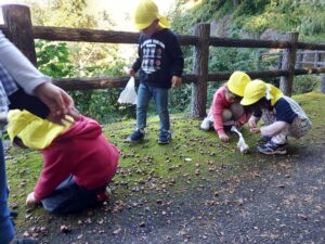 りす組は、どんぐり等の木の実を拾いに散策へ!