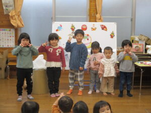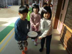 集会で、お正月についてや、もちつきのお話を聞きましたよ!