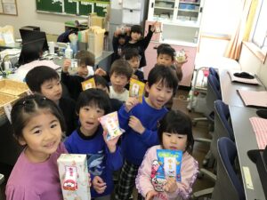 上の段はくま組、下の段はぞう組が、丸い形に整えました。