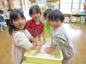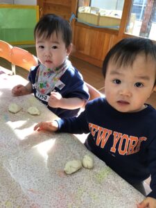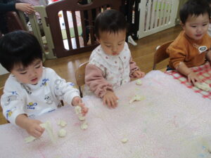 上の段はくま組、下の段はぞう組が、丸い形に整えました。