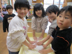 みんなの元気な掛け声で、あっという間にもち米からおもちになりましたよ~✨