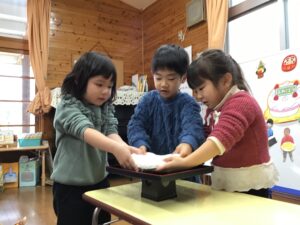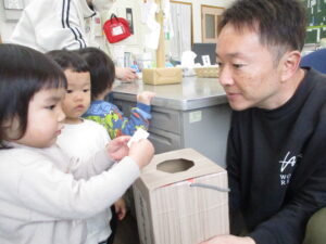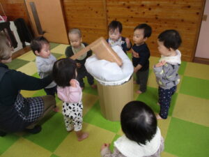 うさぎ組、ひよこ組のお部屋でも、もちつきごっこが始まりましたよ~!