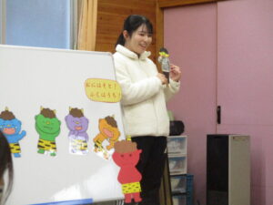 集会では、節分の話や、豆まきについてのお話を聞きました。