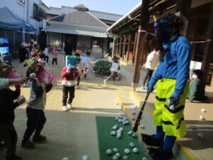 園庭には、お面を付けた子どもたちが準備万端です✨