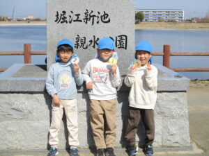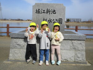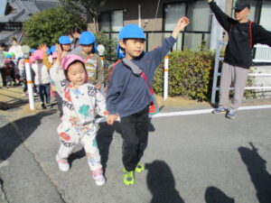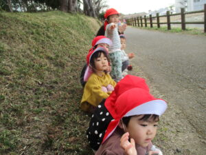 親水公園までは、大きいクラスの子が 小さいクラスのお友だちをしっかり気に掛け