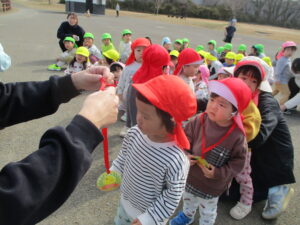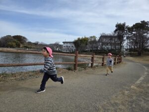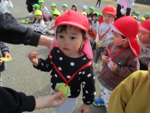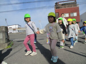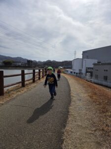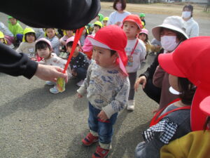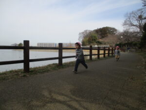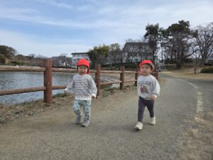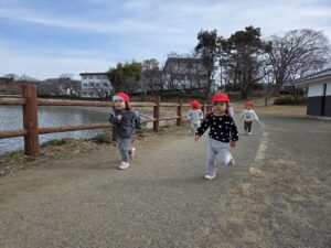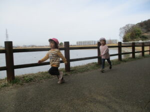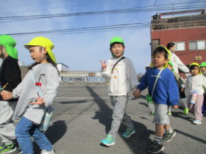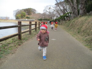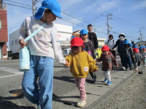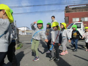 親水公園までは、大きいクラスの子が 小さいクラスのお友だちをしっかり気に掛け