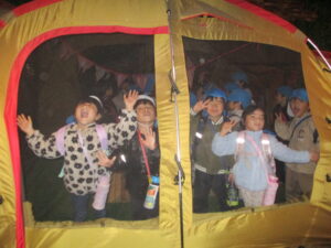 KIT PLAYで遊ぶ前に、テントでキャンプごっこ!?