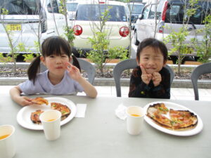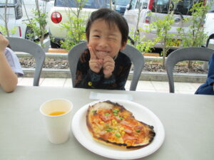 みんなが作ったピザが 窯で美味しそうに焼けていきます😋