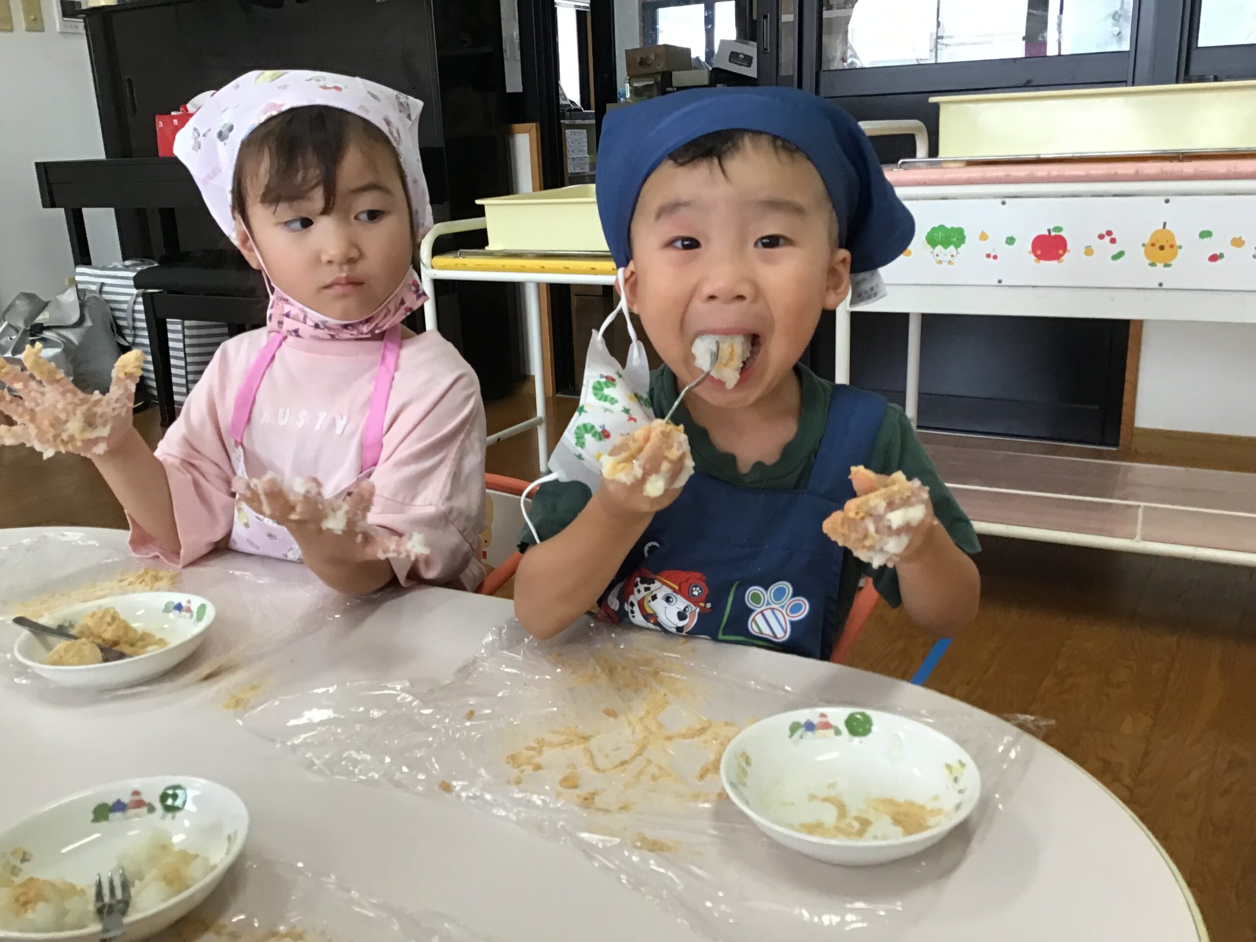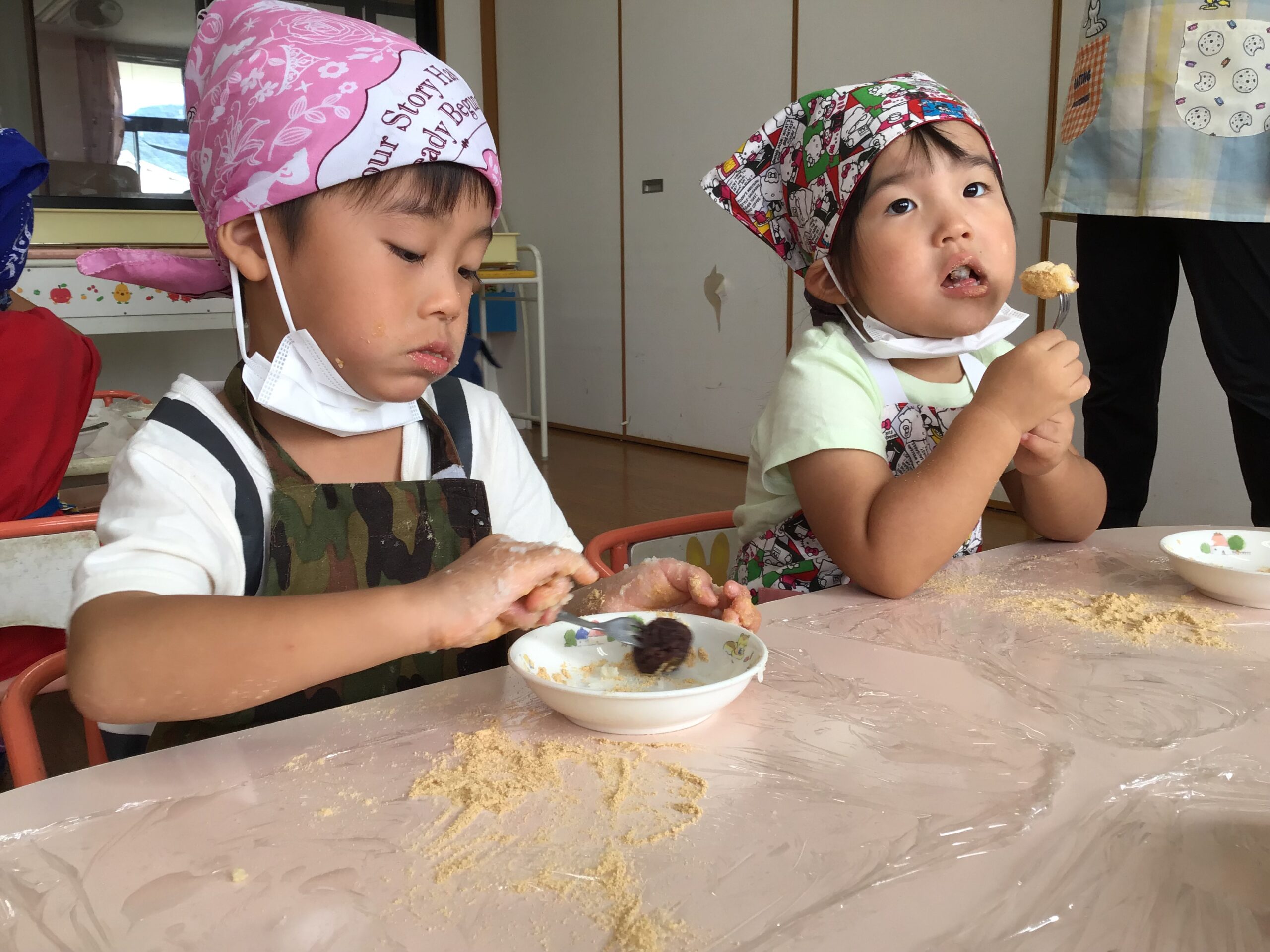 こあら組がクッキング活動でおはぎ作りをしました😊