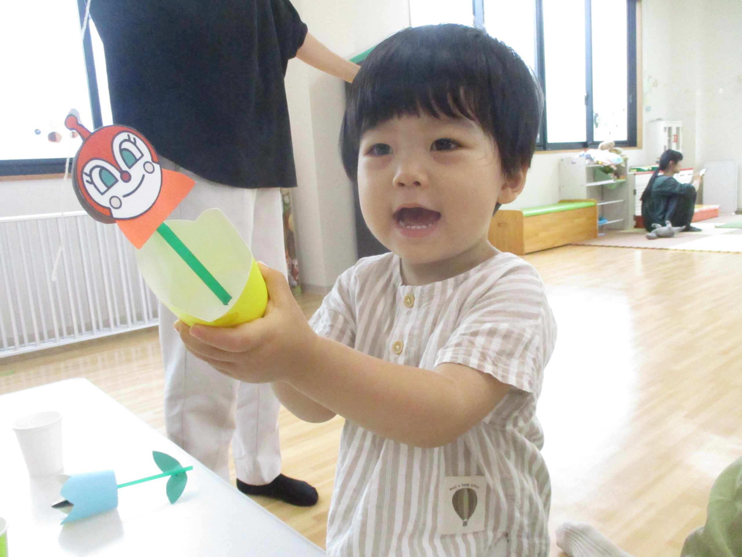チュウリップの花からアンパンマンのキャラクターが飛び出すよ🌷