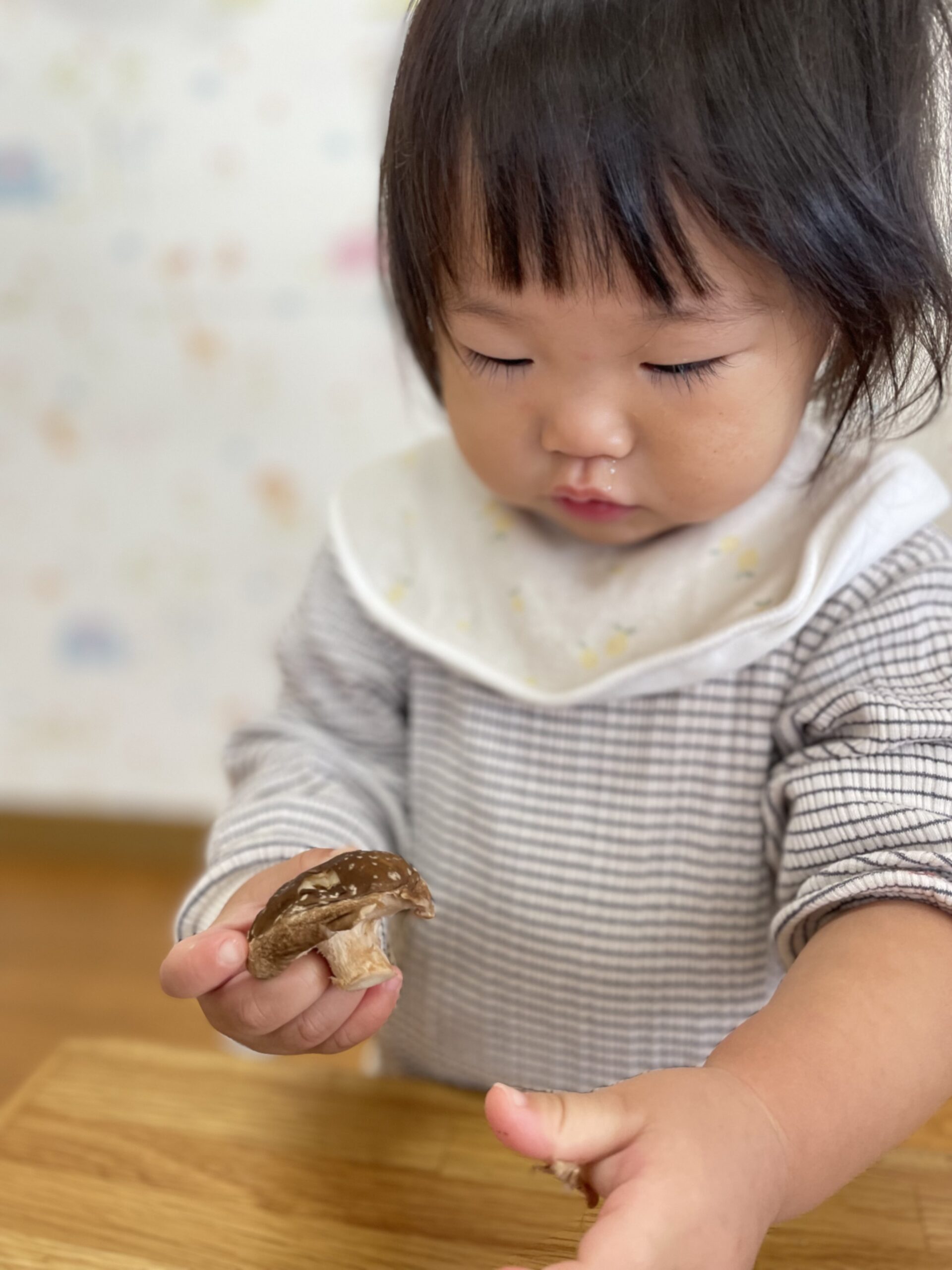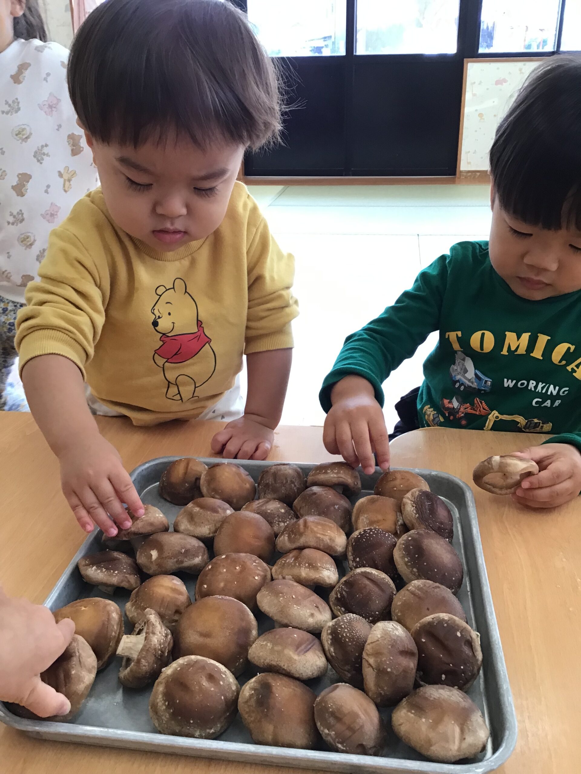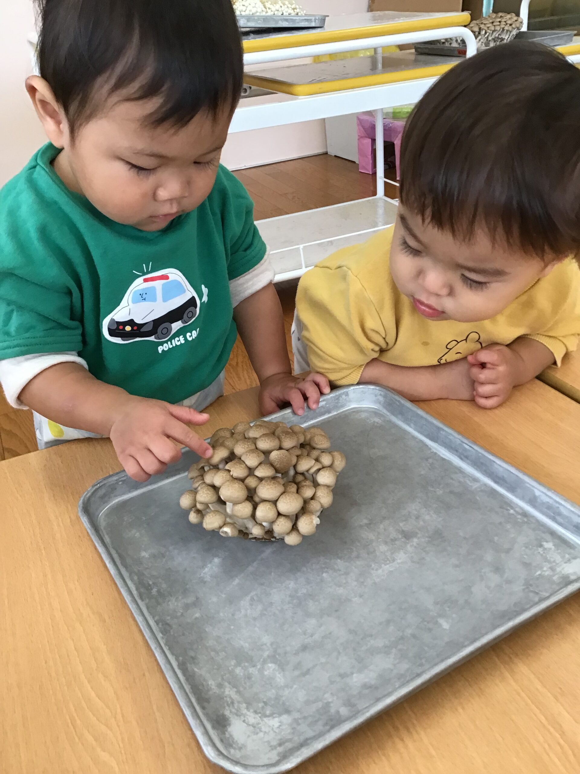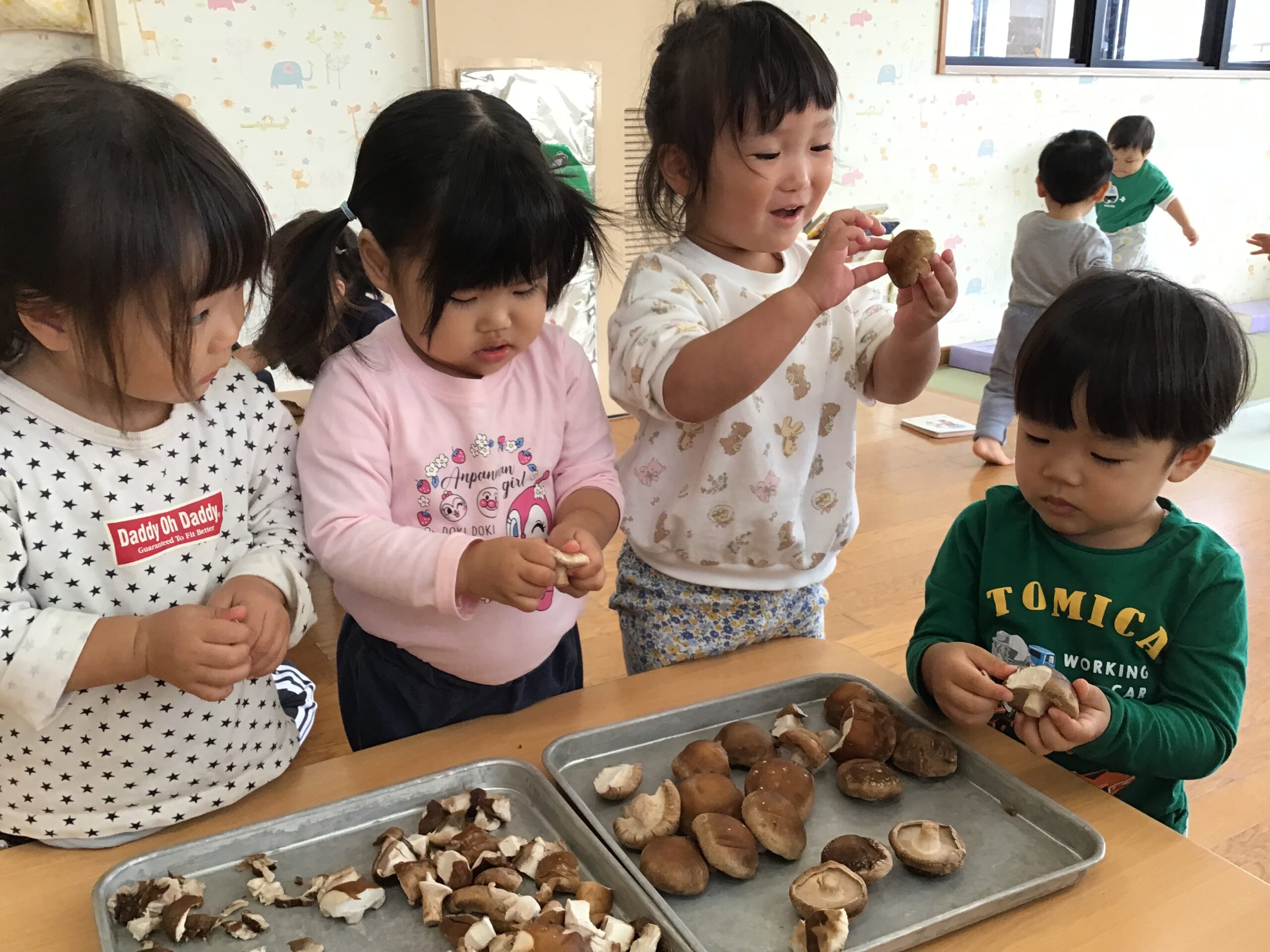 「きのこ?」「むきむきする?」と、どんなことをするのかなぁ…と気になる様子。