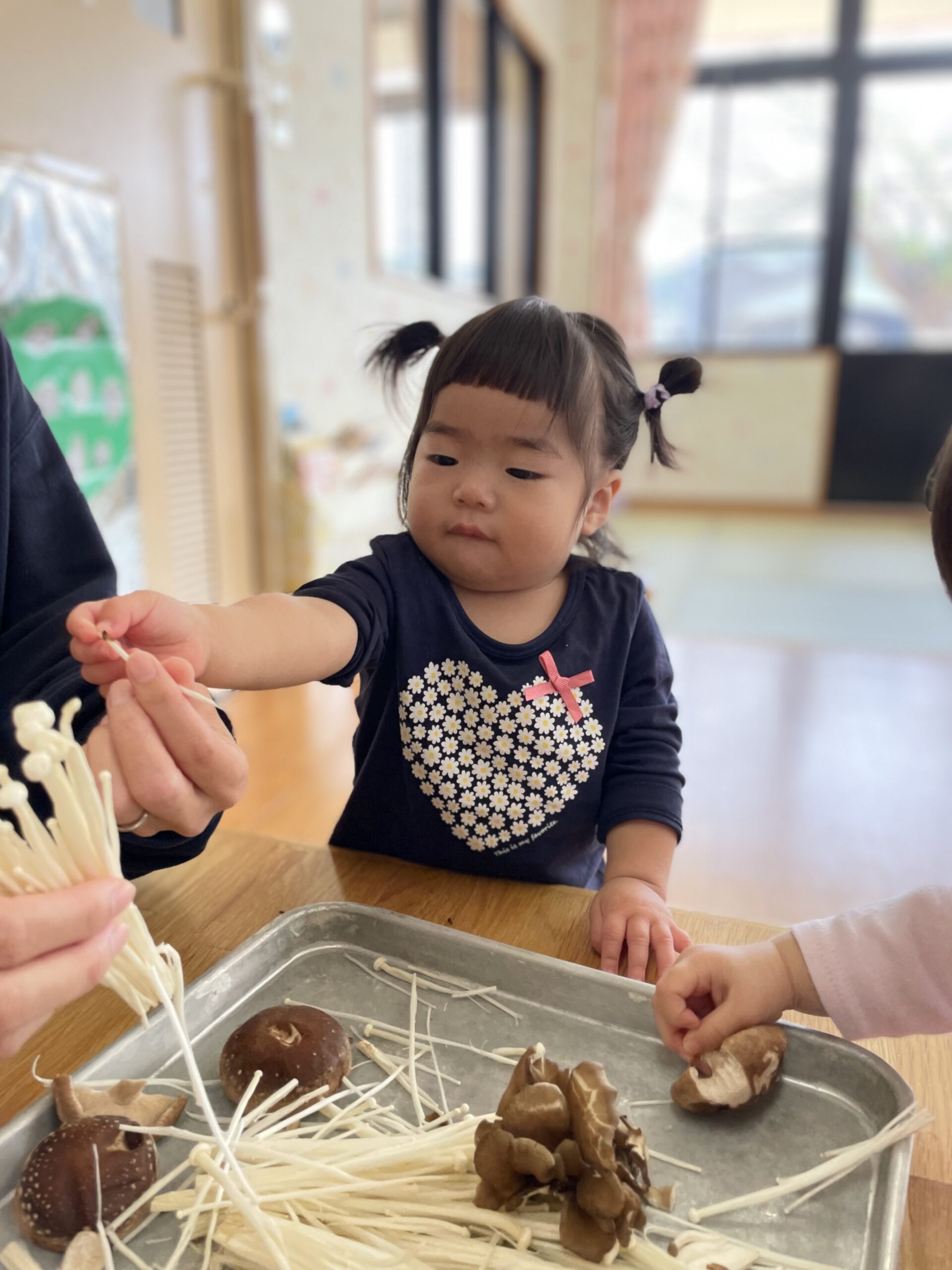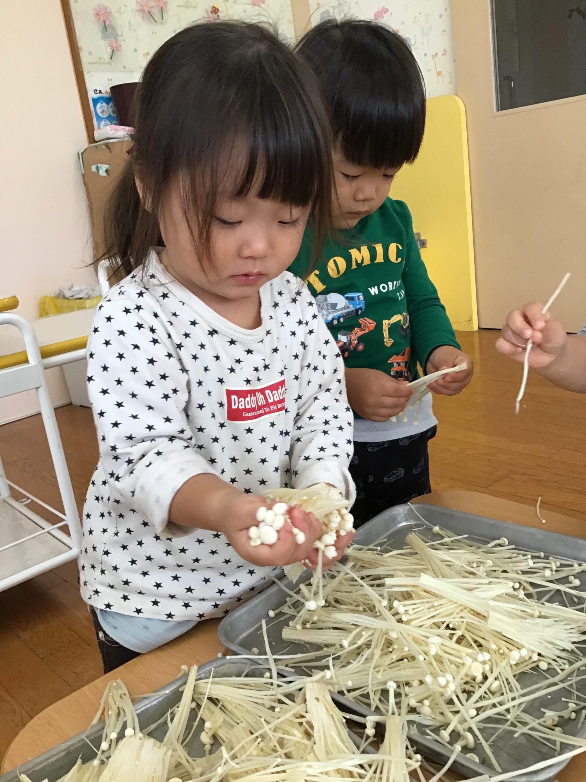 食育活動で、きのこをちぎるお手伝いをしました🍄
