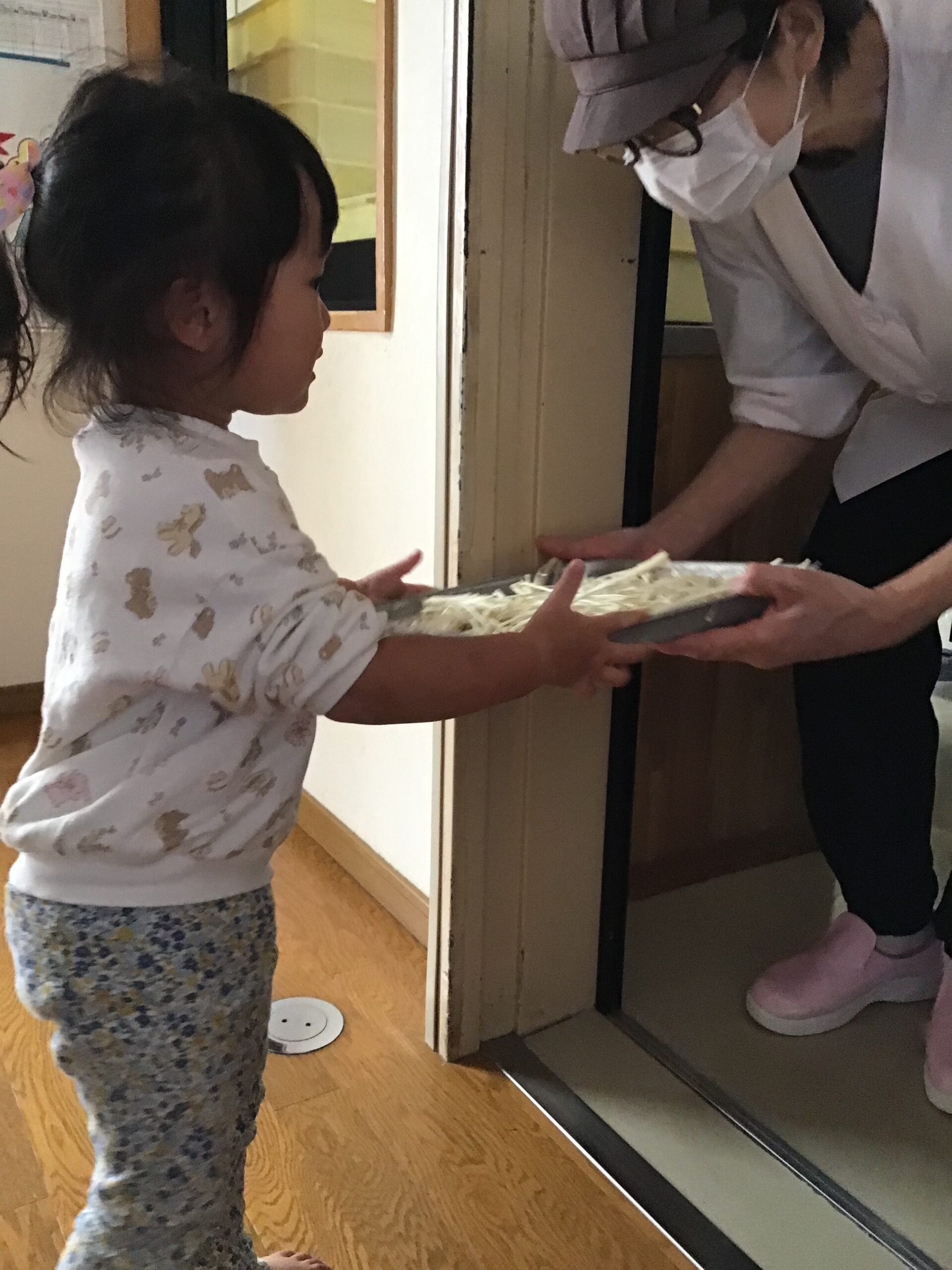 給食の先生に、「はい、どうぞ!」