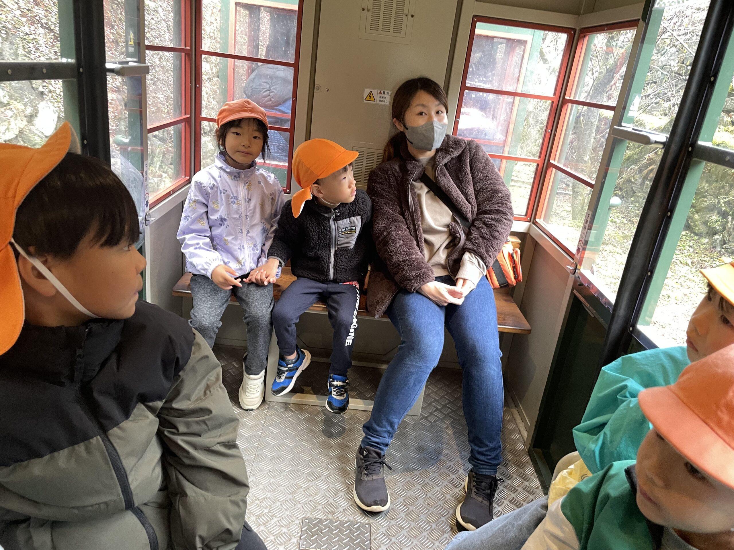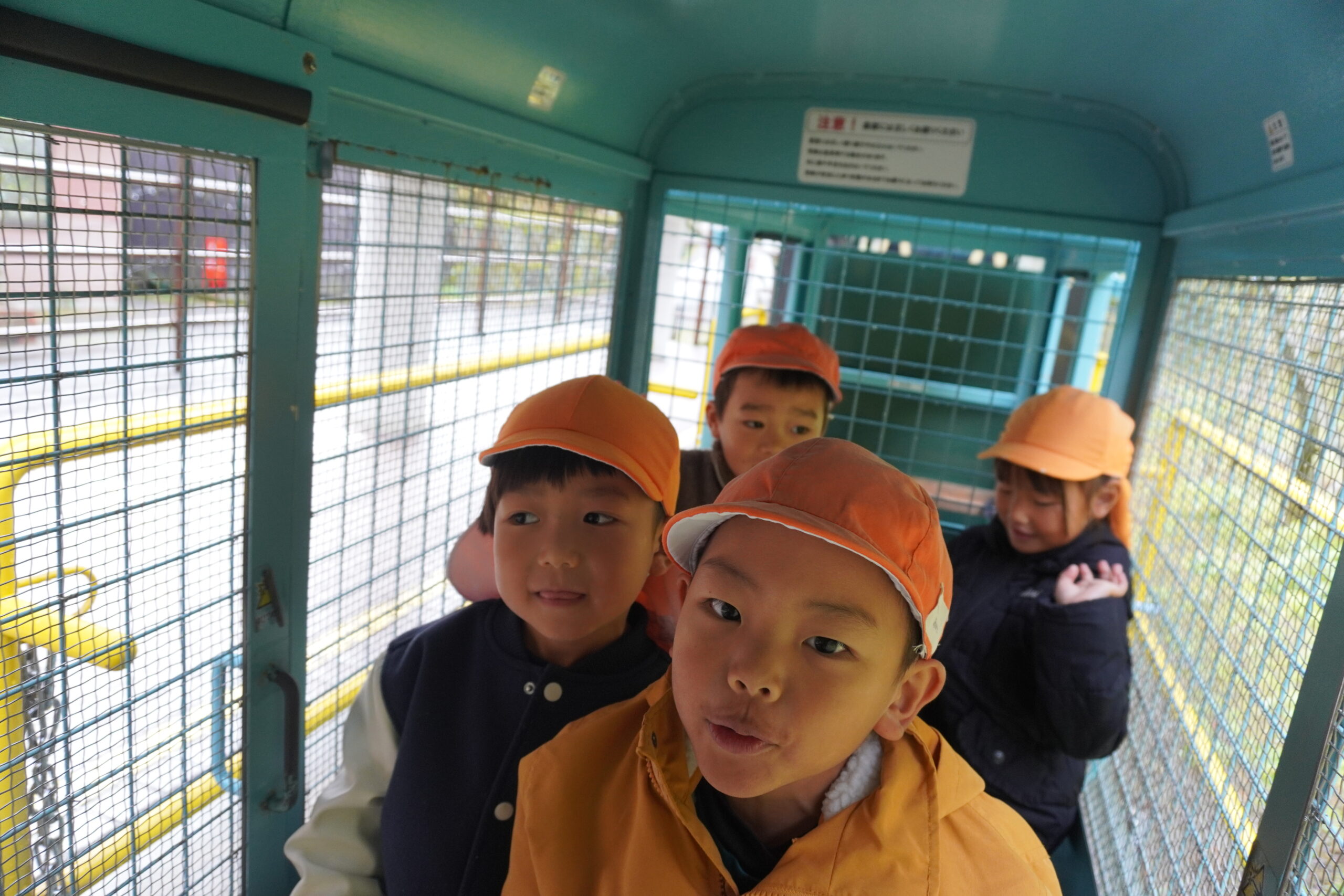 カゴ型のトロッコに揺られながら、みんなでわいわい。