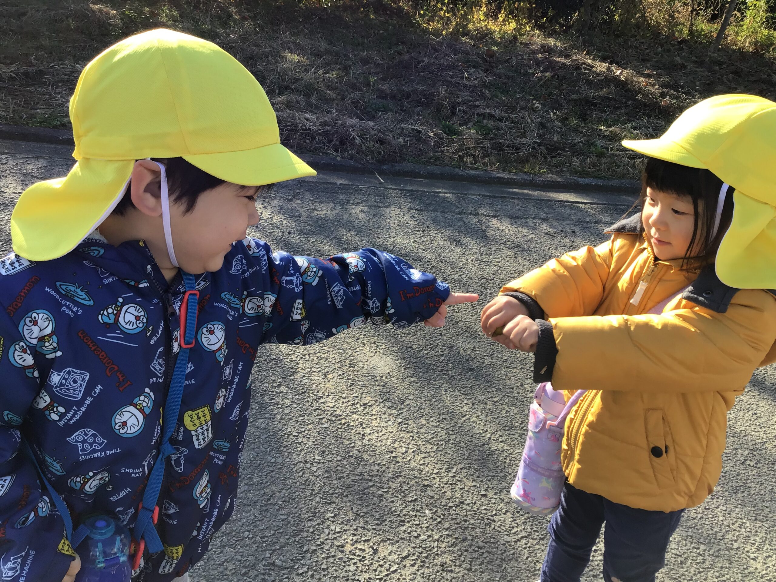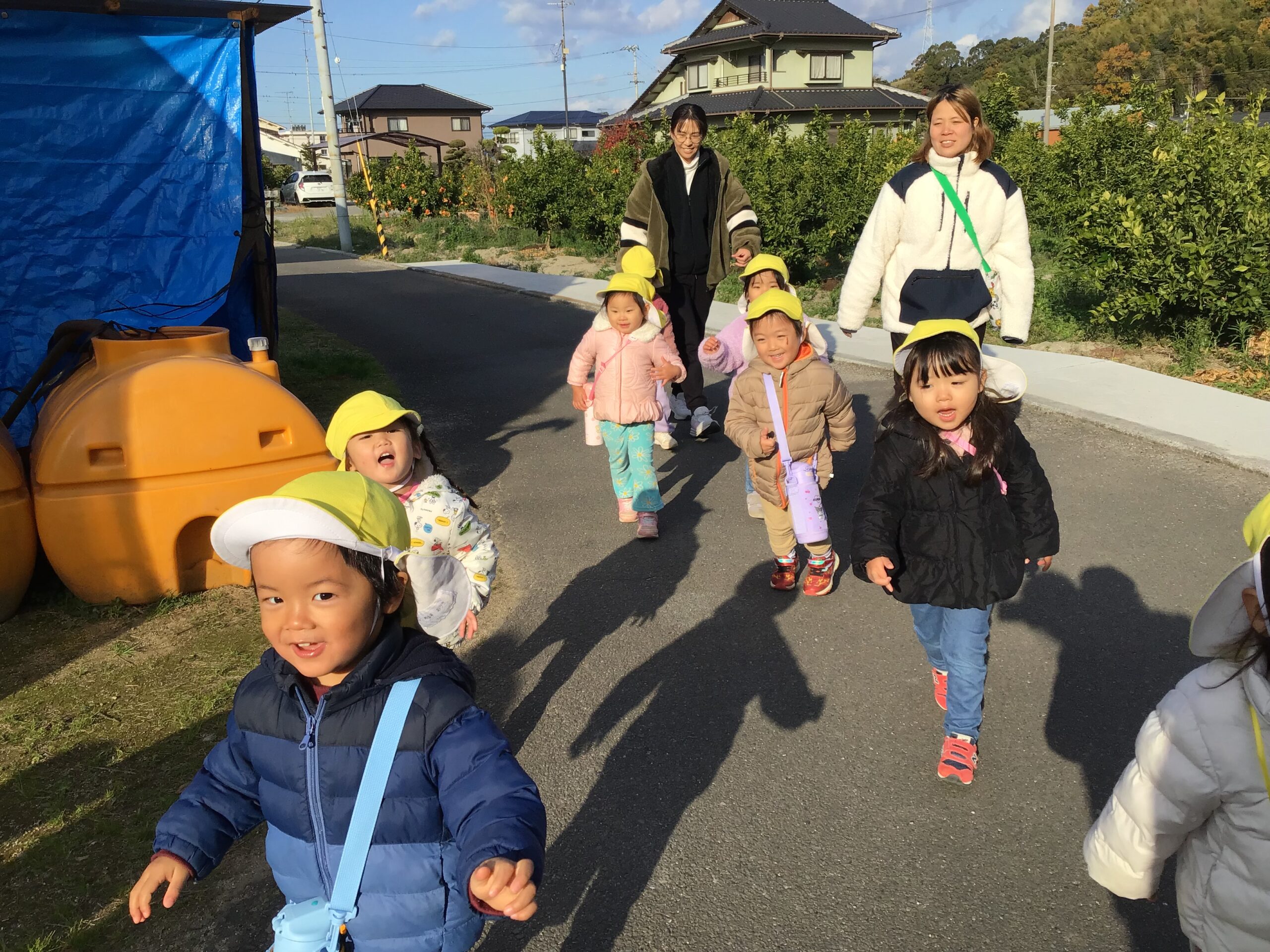 水筒を持って出発!!寒さなど子どもたちには関係なくとても楽しそうです💛