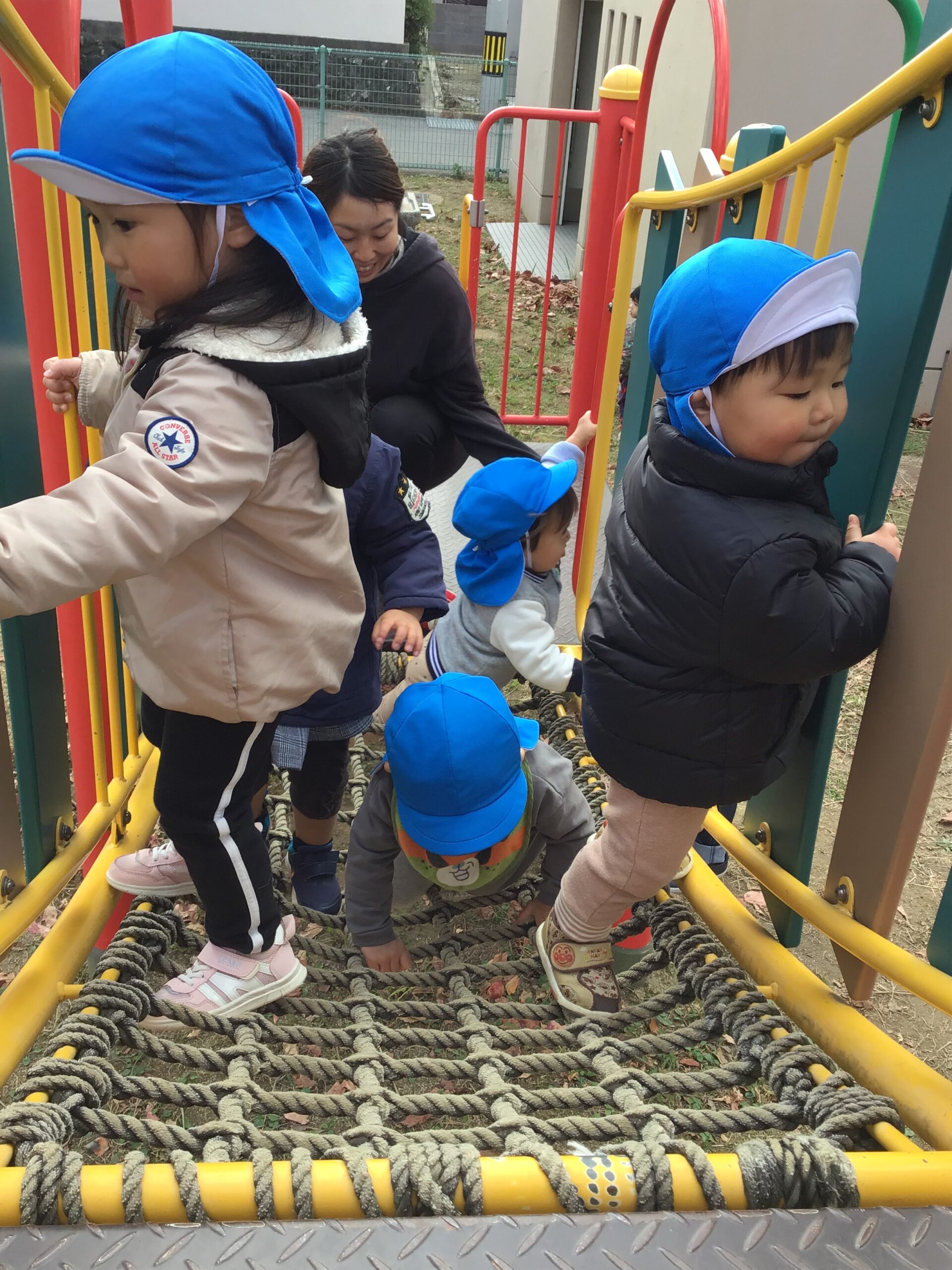 公園では保育園にはない固定遊具でたくさん遊びました。