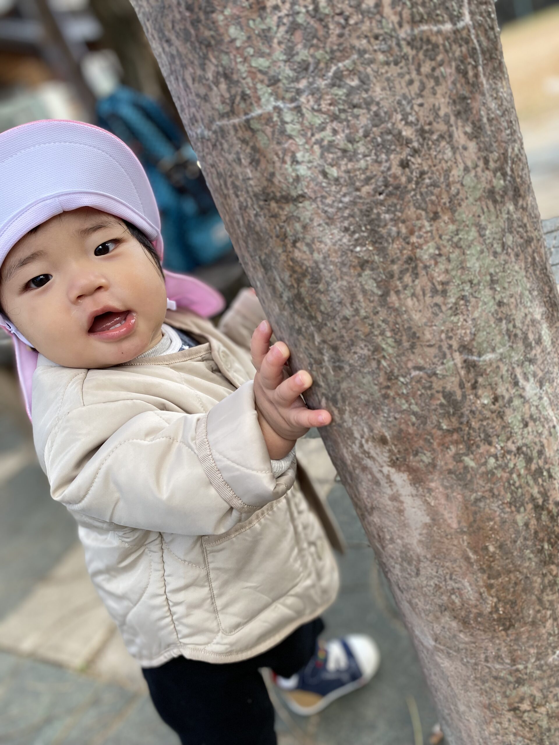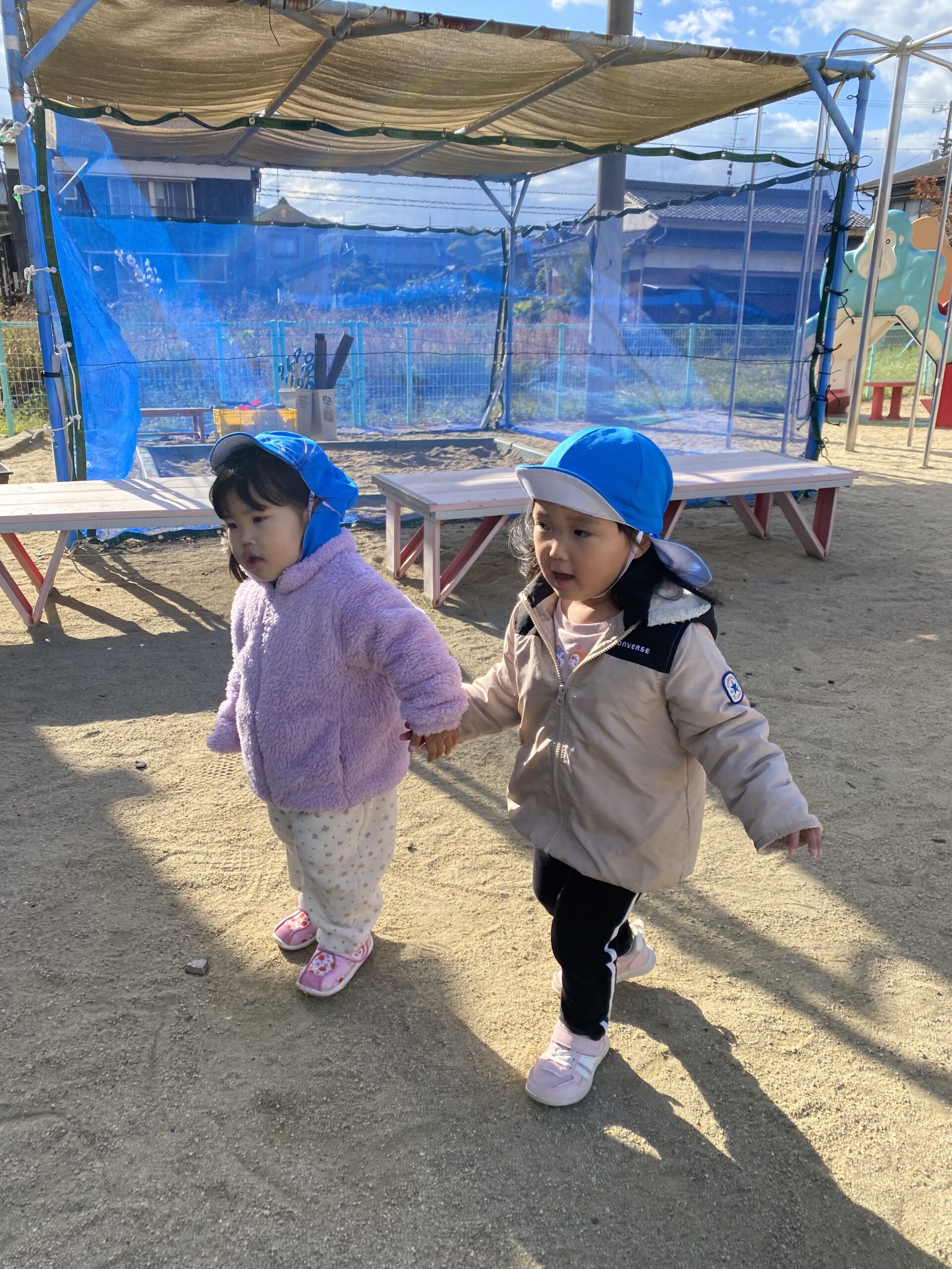 お友だちや保育教諭と手を繋いだり、お散歩カートに乗って出発!!