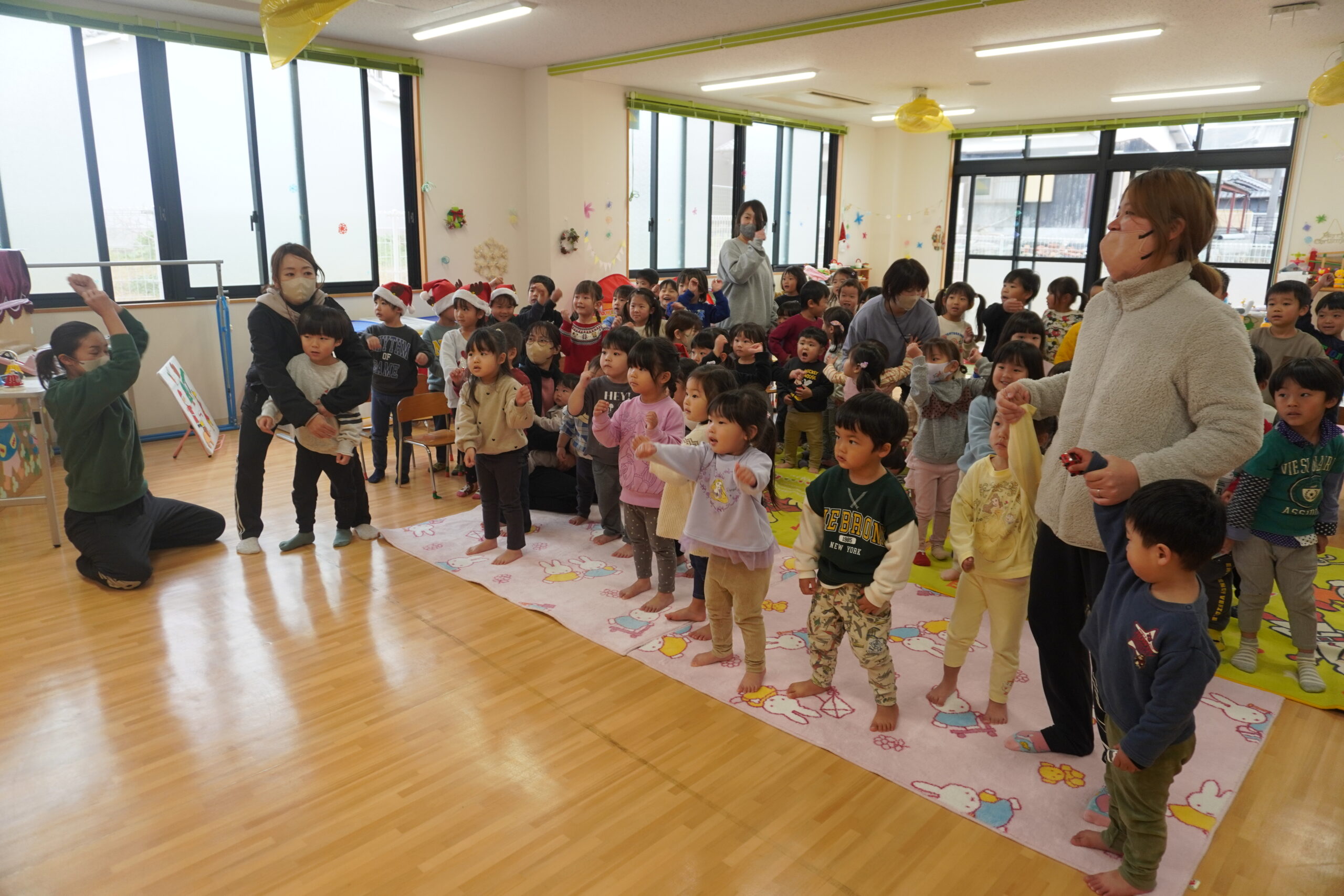 みんなでクリスマスソングを歌っていると、鈴の音が聞こえて、サンタさんが登場!!!!