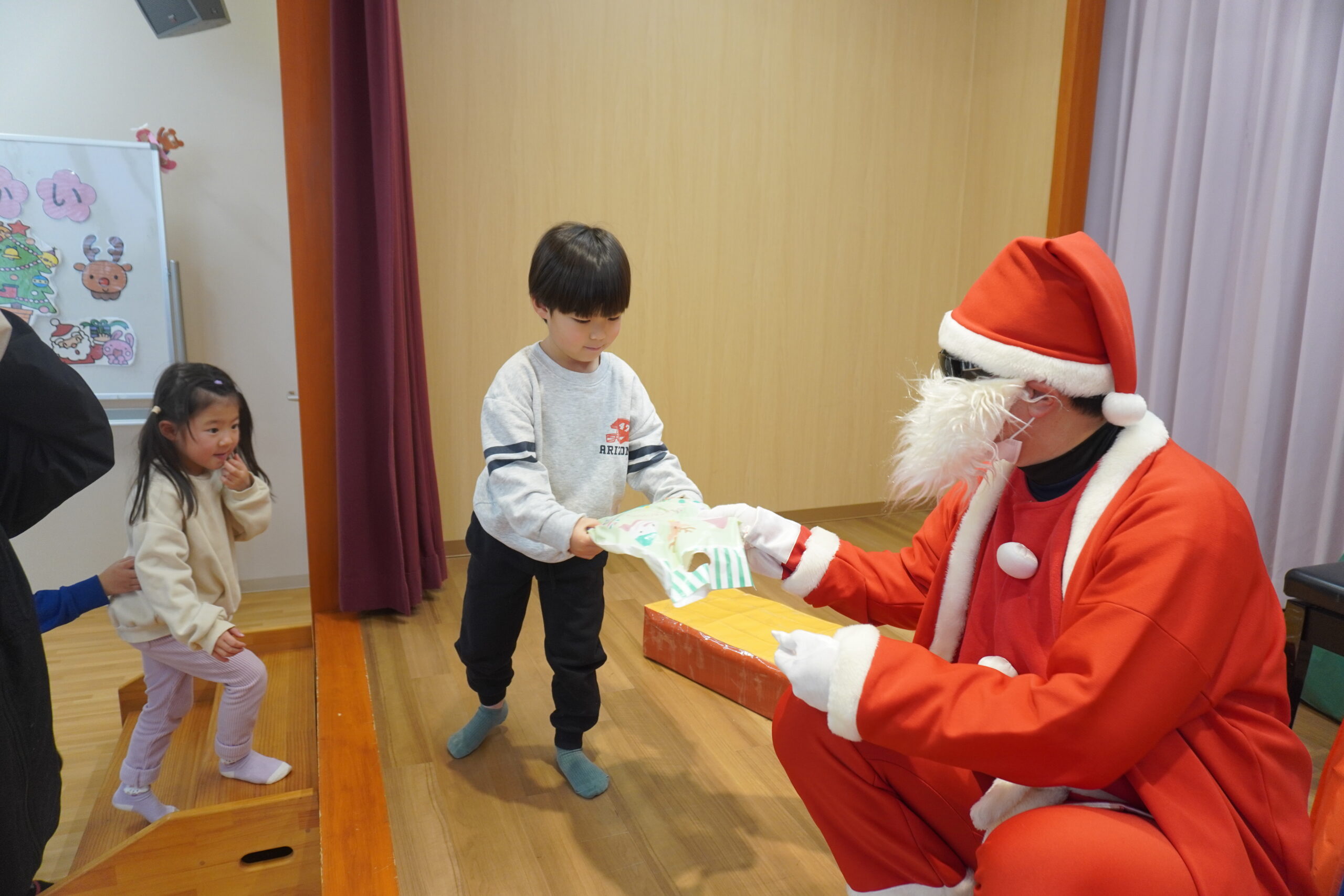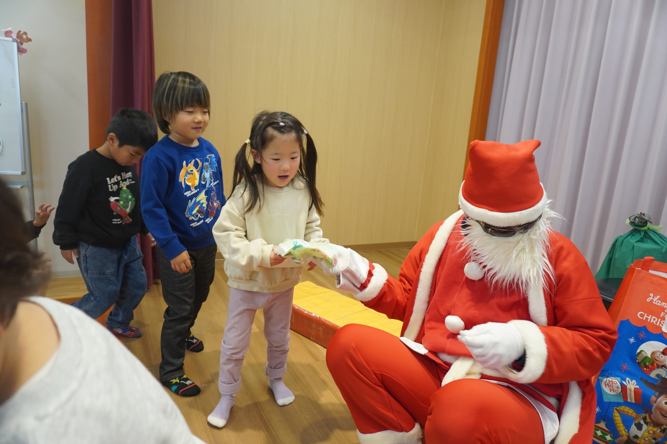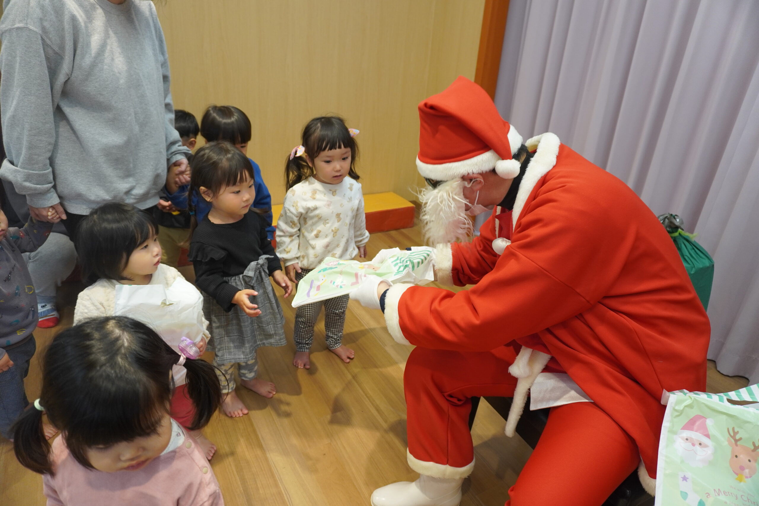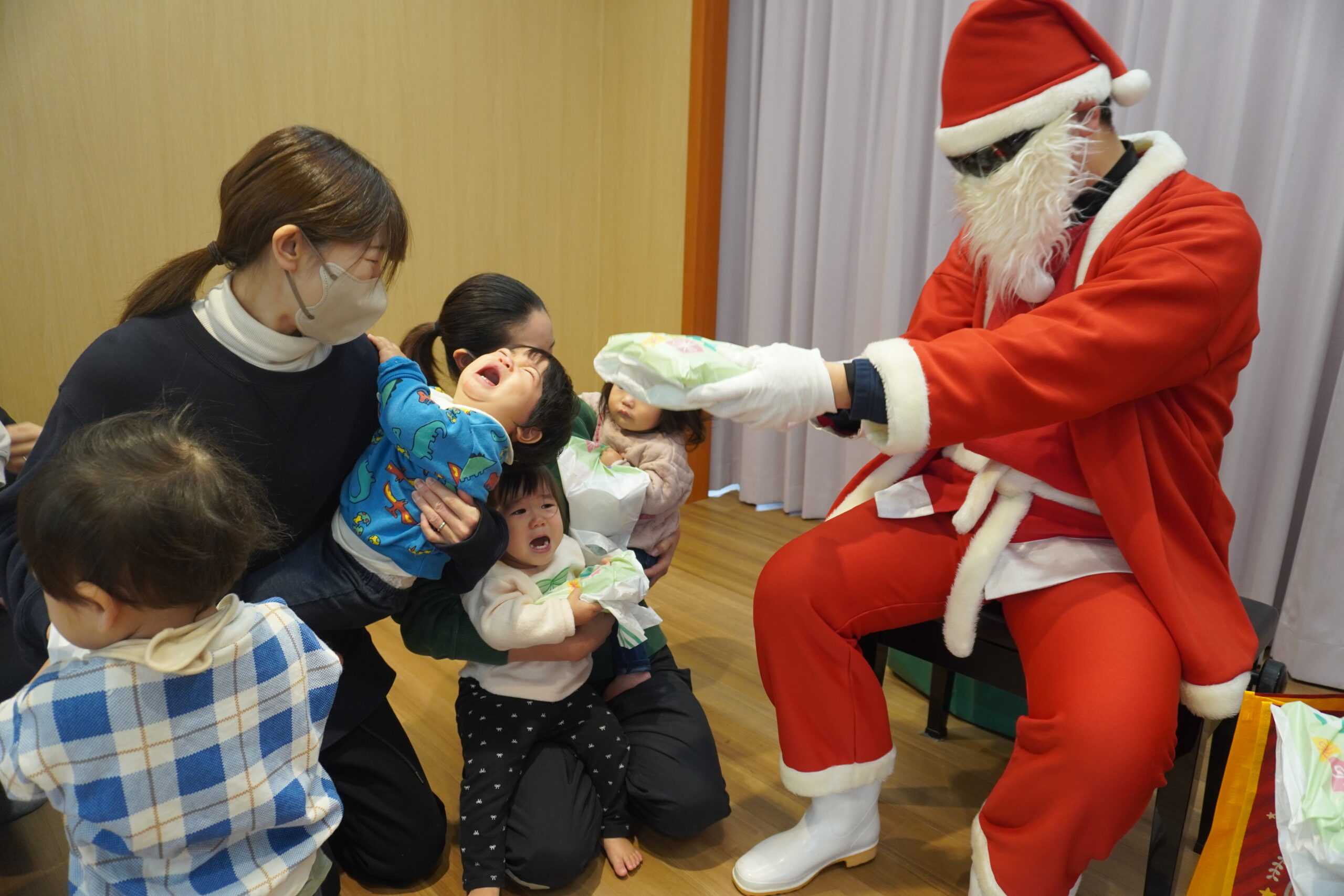 近くに行くと怖くて泣いちゃう子も・・・でもしっかりとプレゼントはもらいました😆
