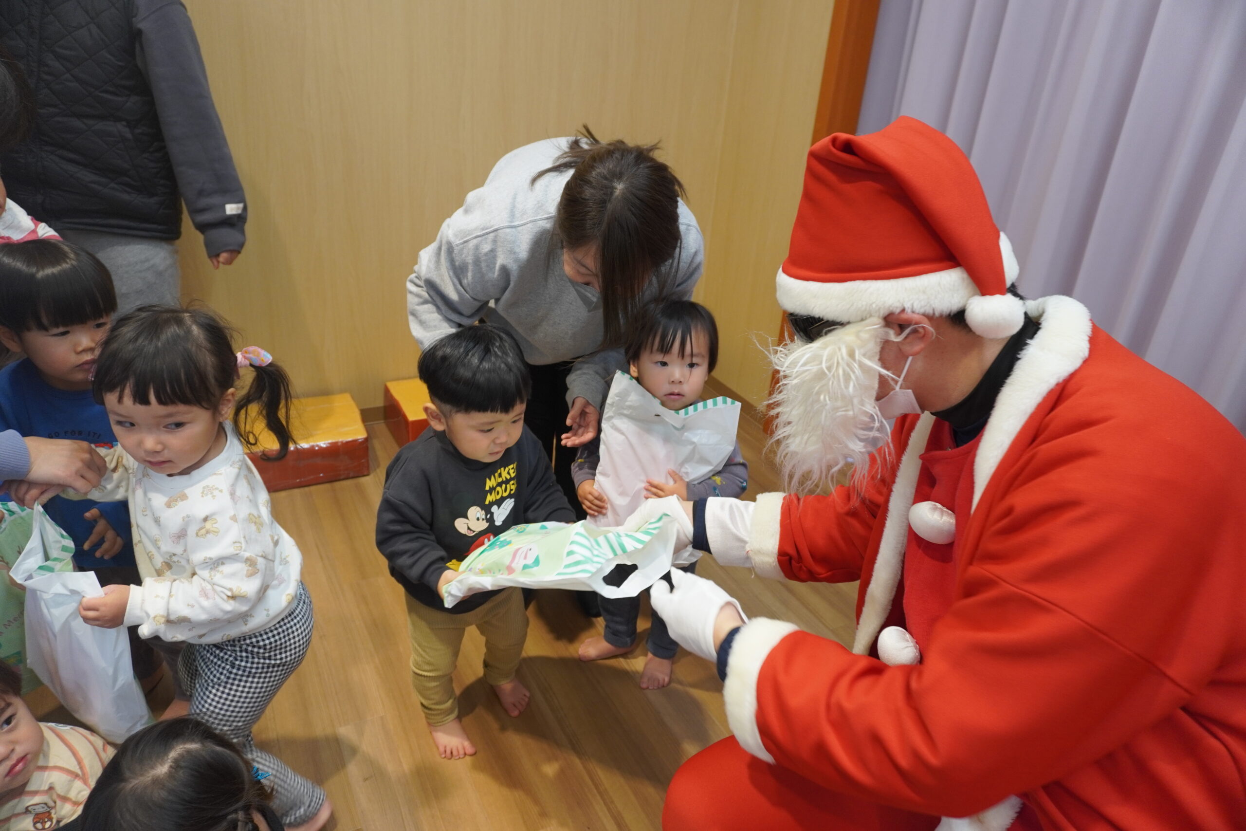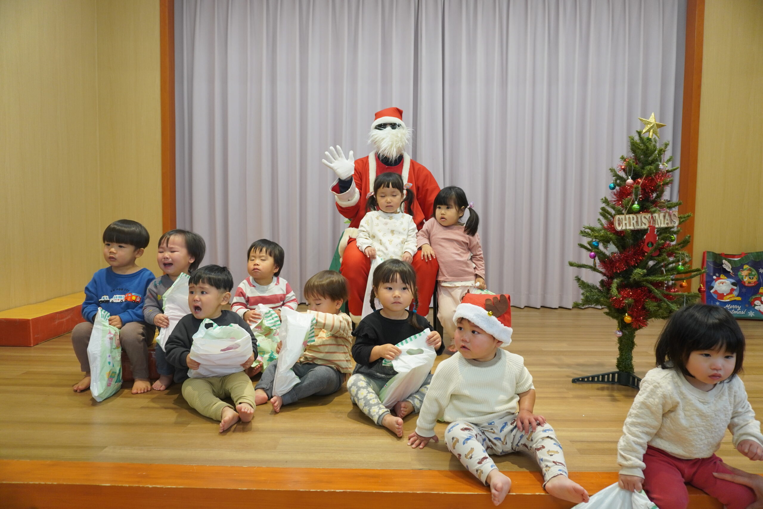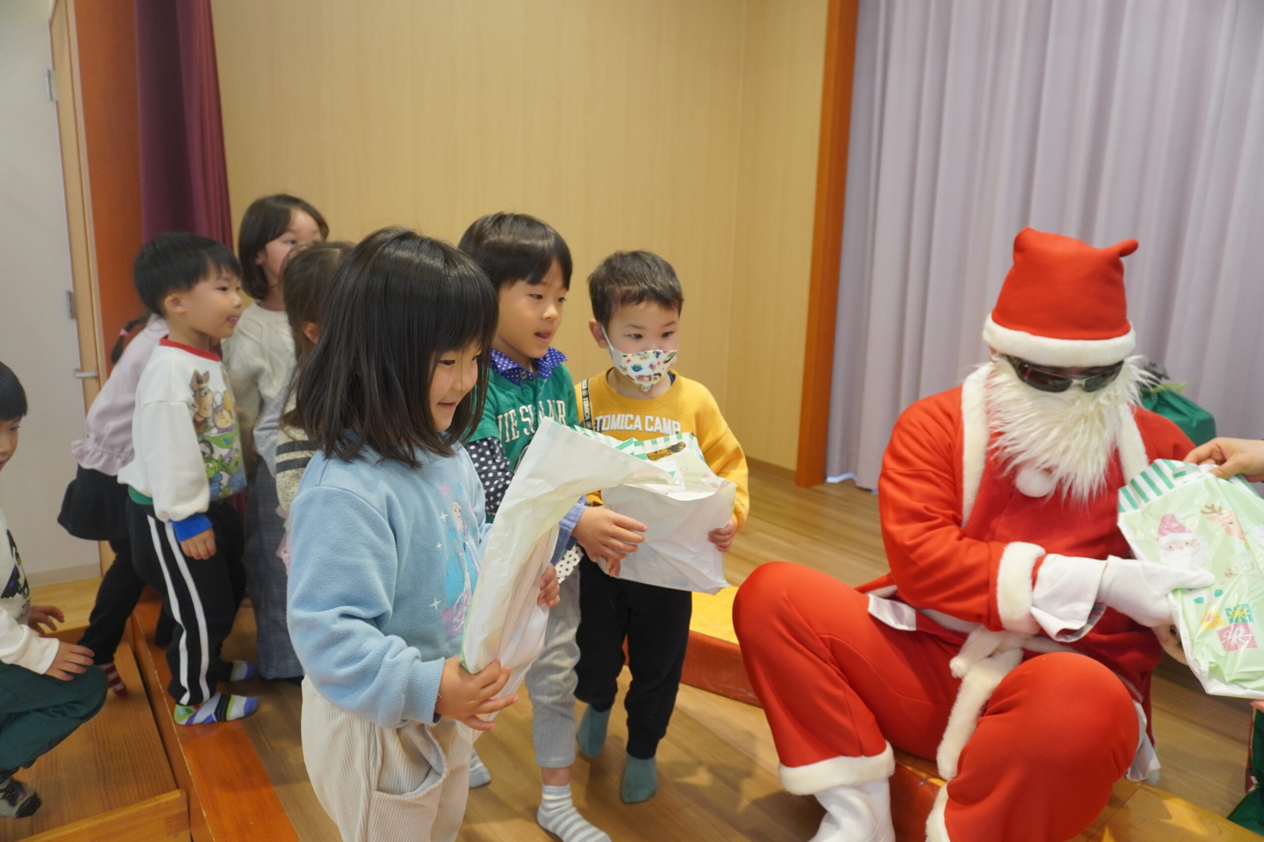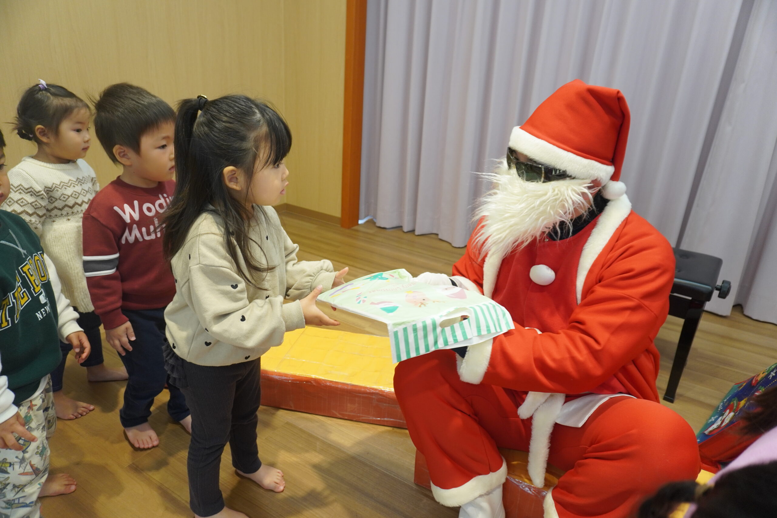 近くに行くと怖くて泣いちゃう子も・・・でもしっかりとプレゼントはもらいました😆