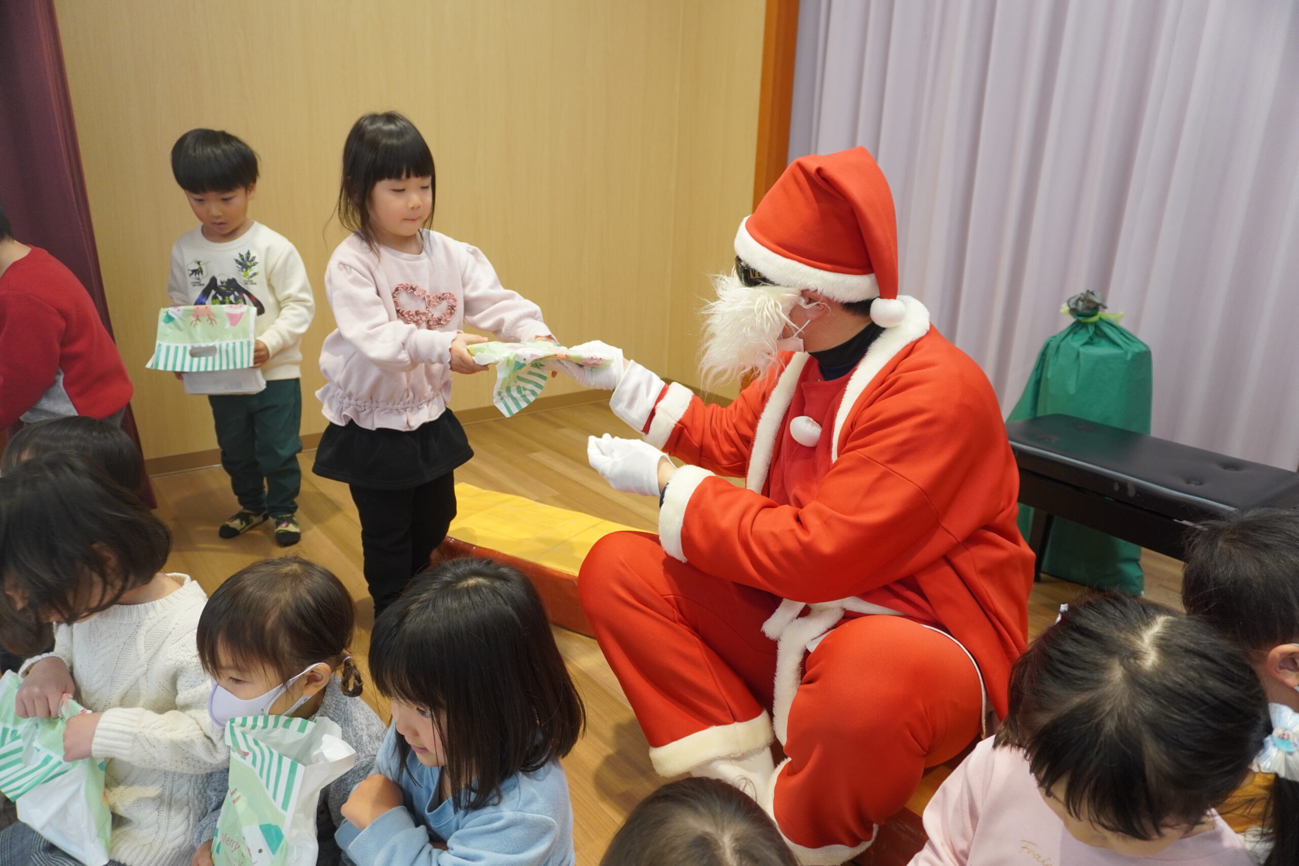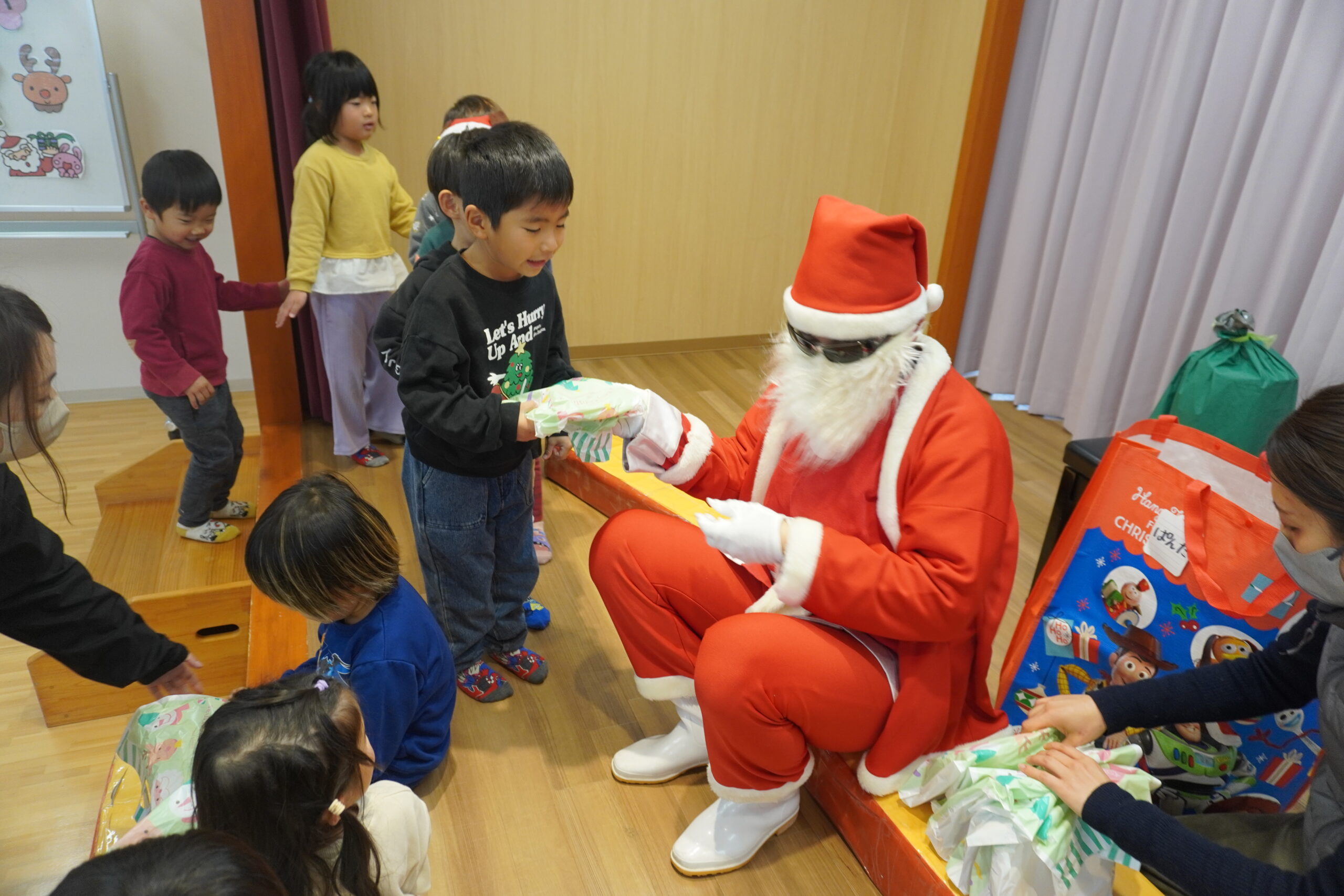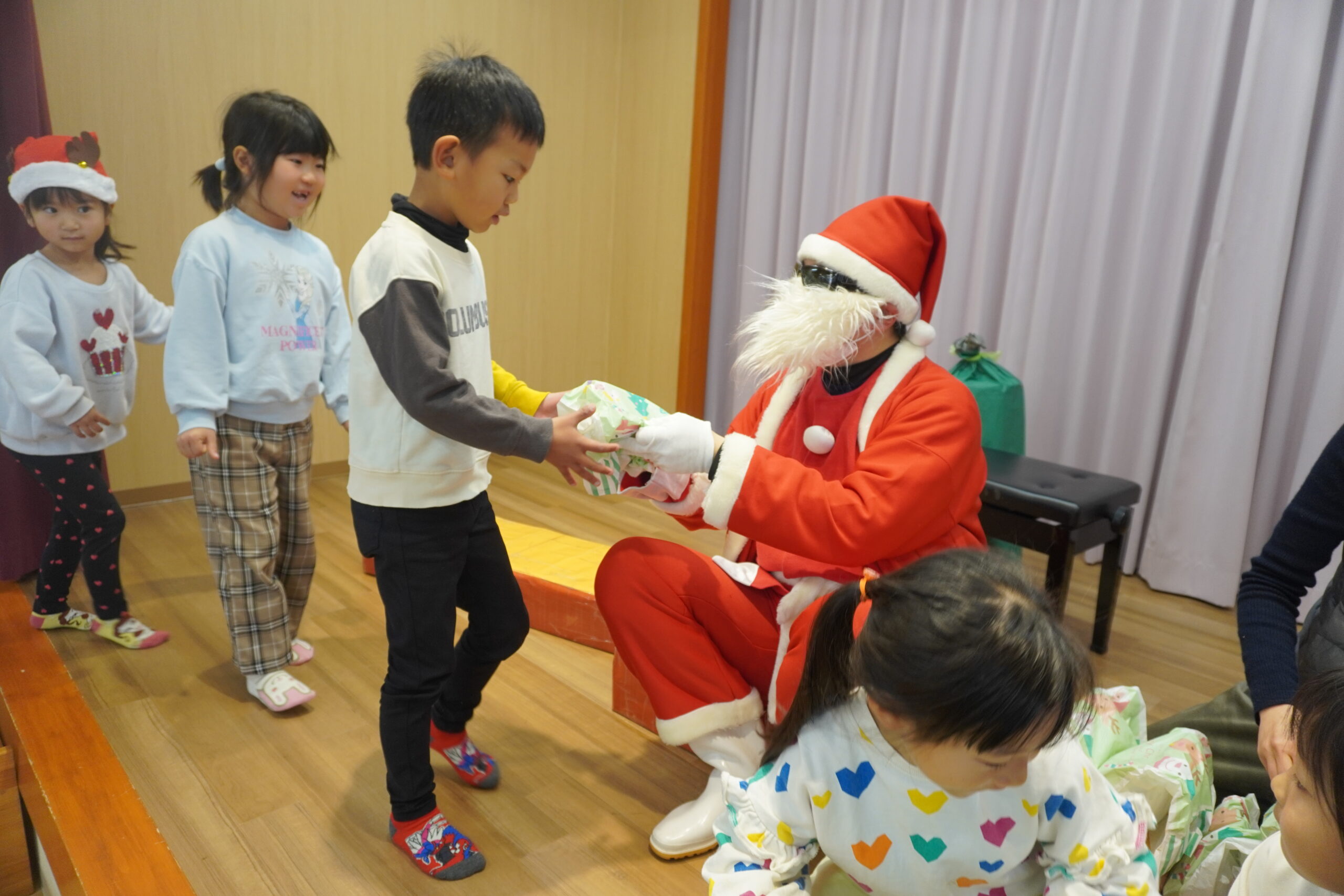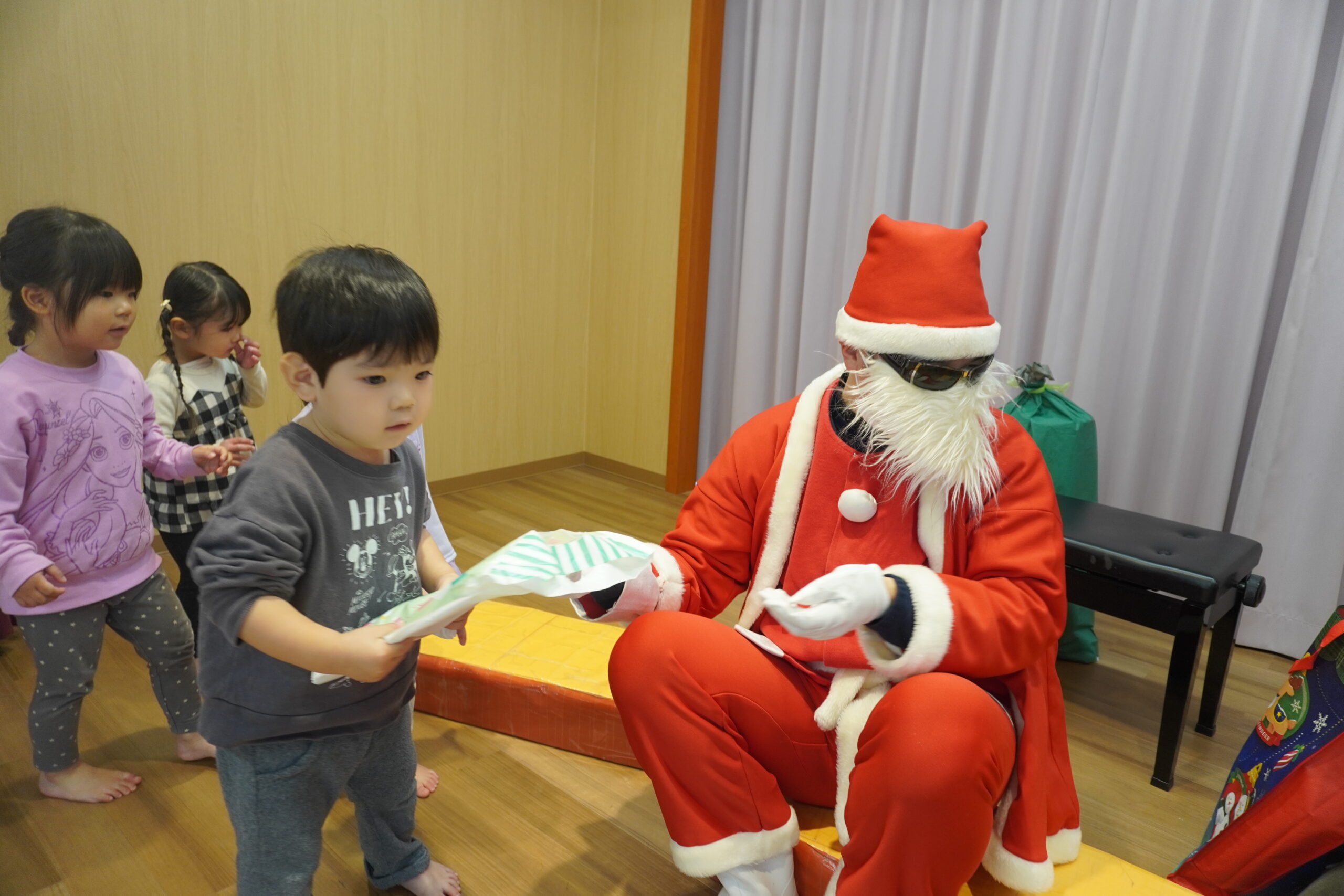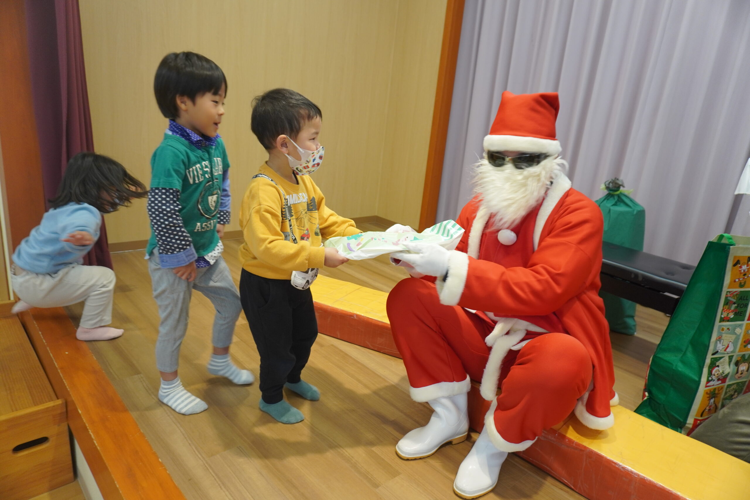 近くに行くと怖くて泣いちゃう子も・・・でもしっかりとプレゼントはもらいました😆