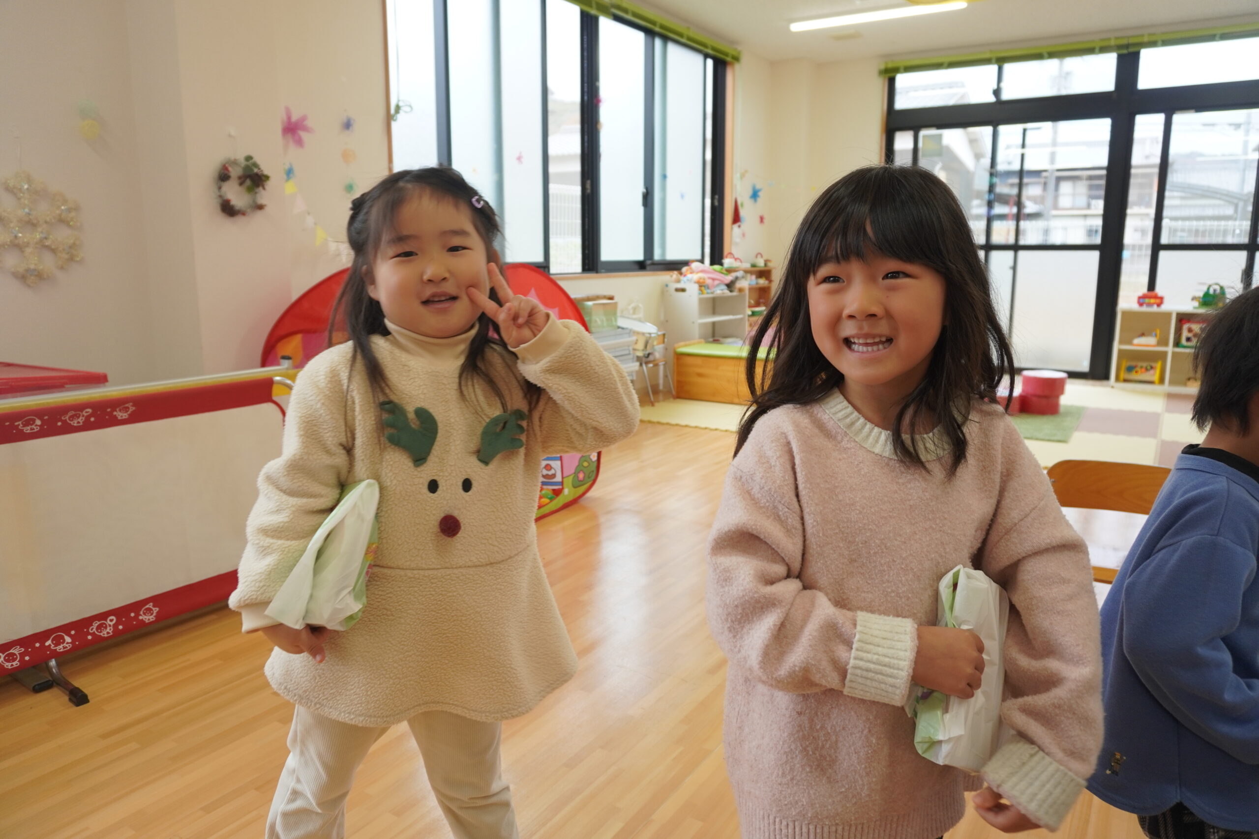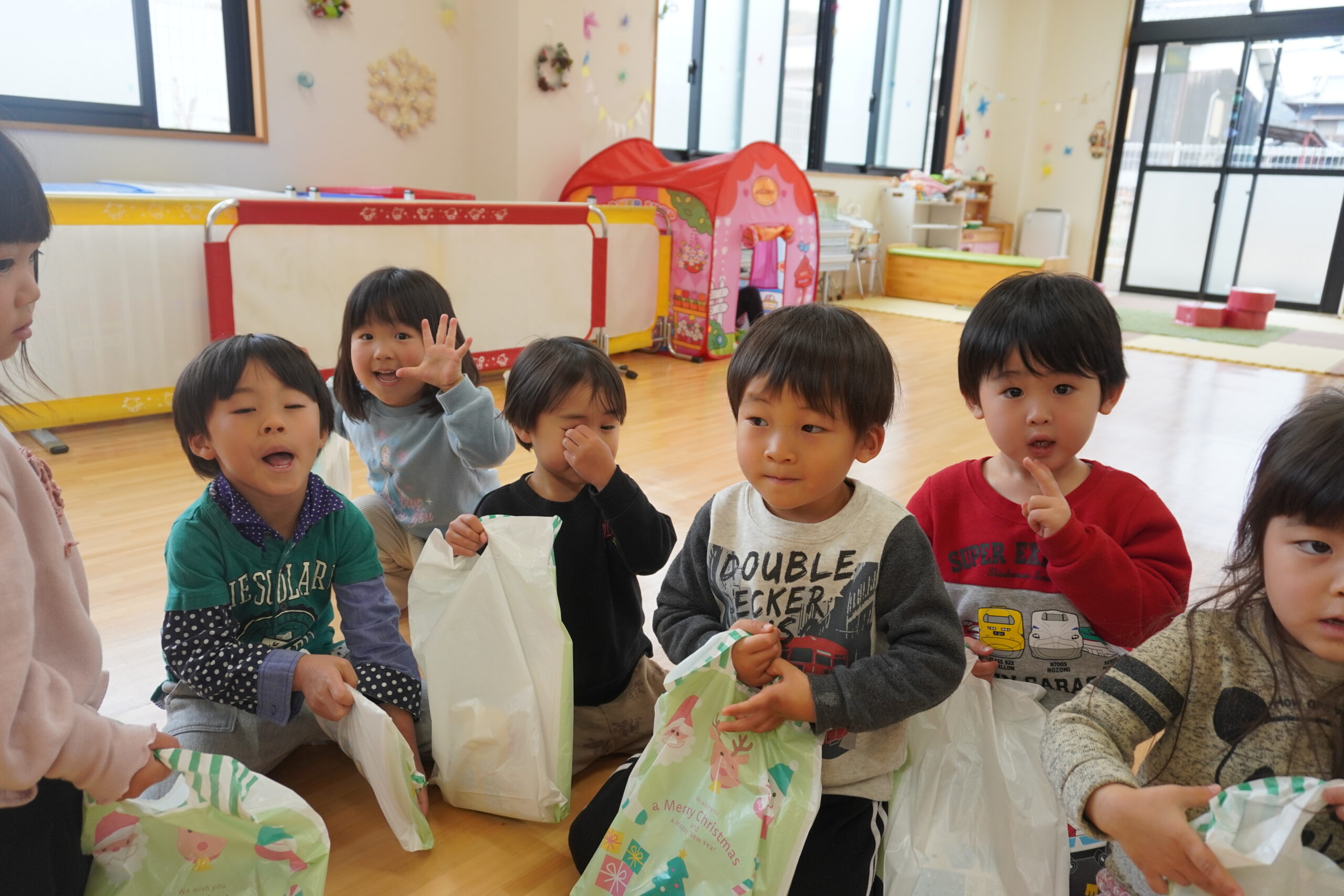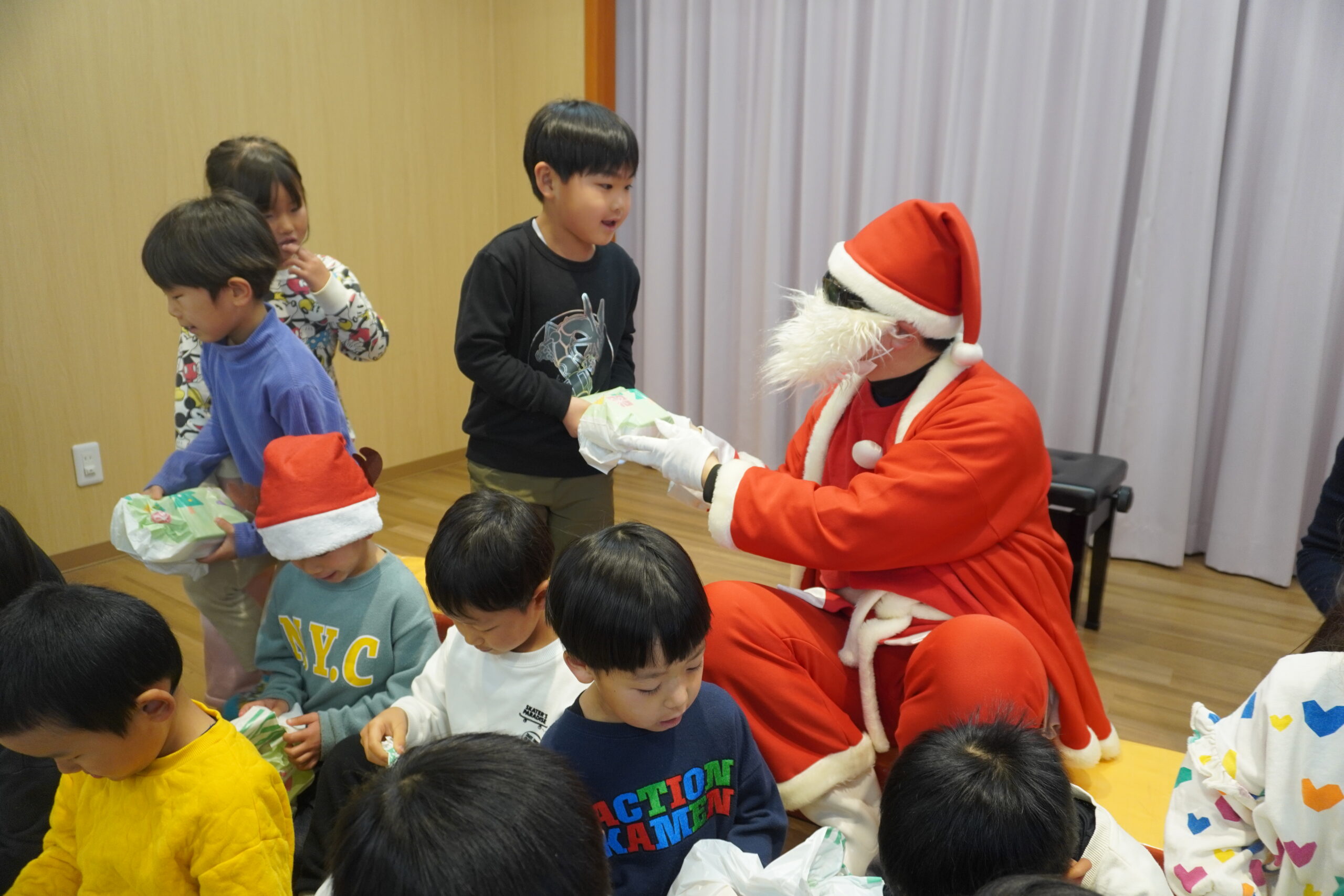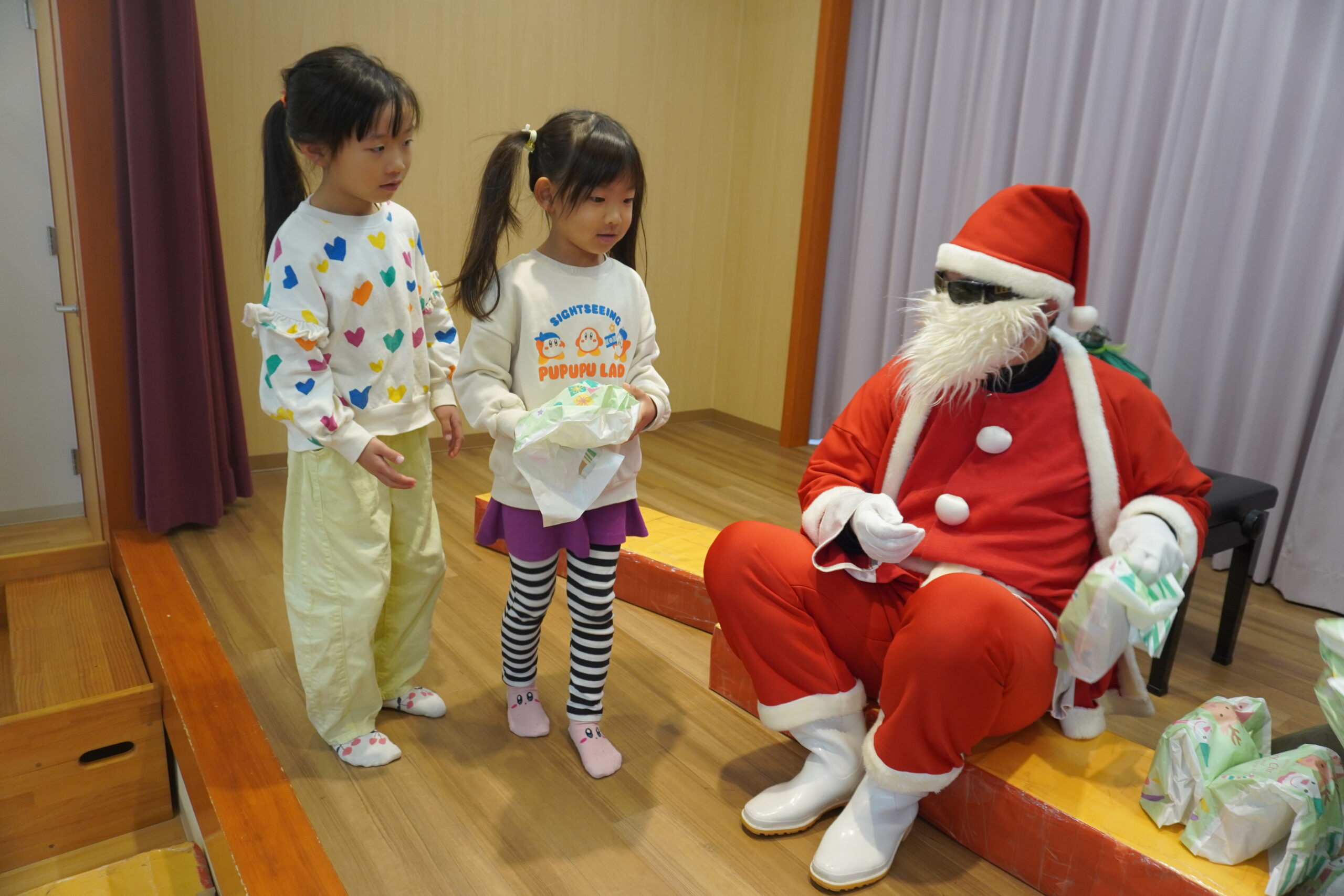 近くに行くと怖くて泣いちゃう子も・・・でもしっかりとプレゼントはもらいました😆