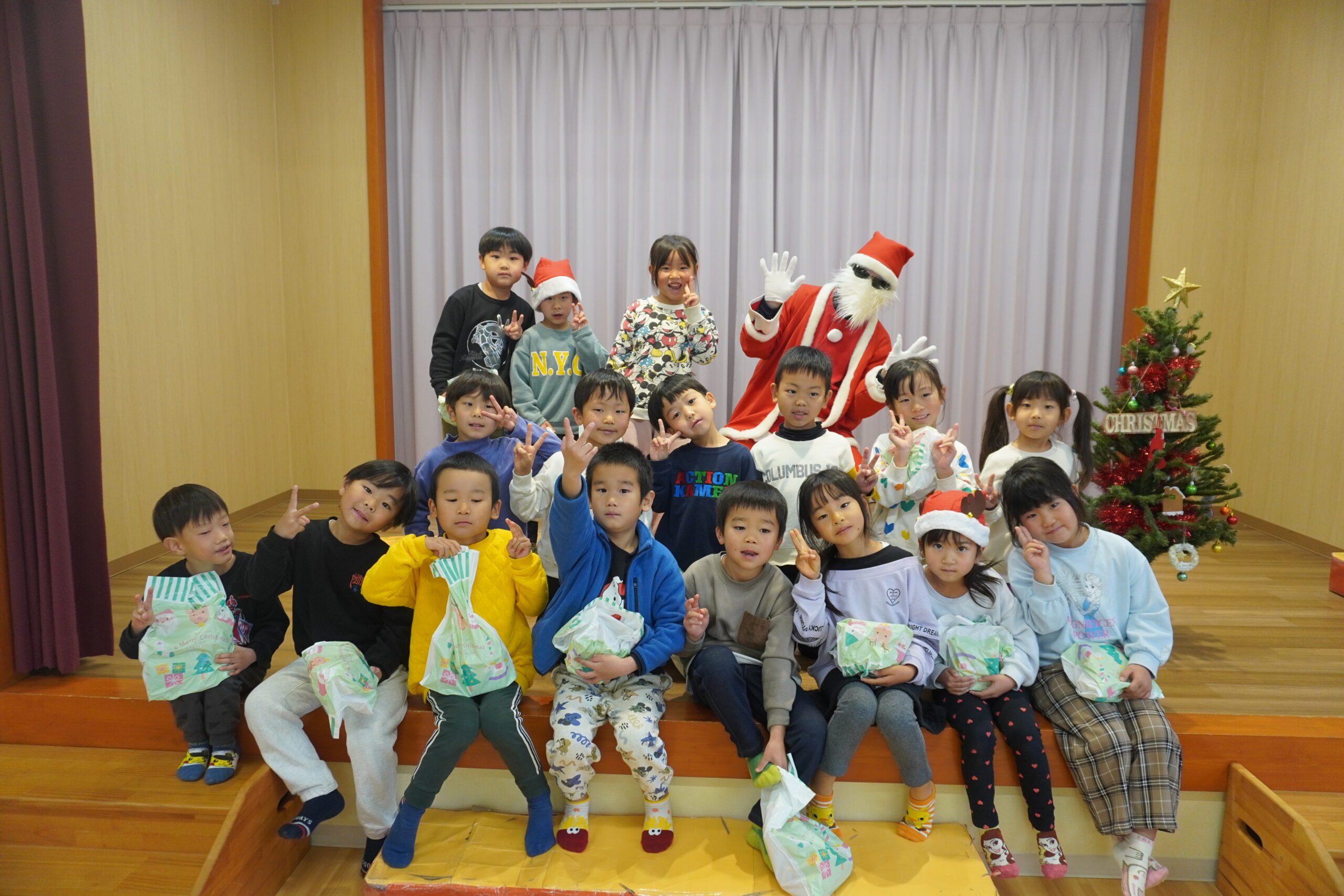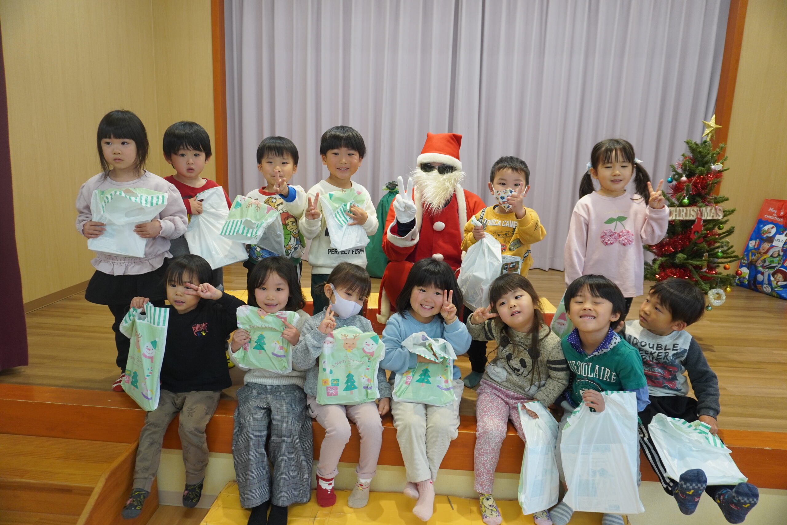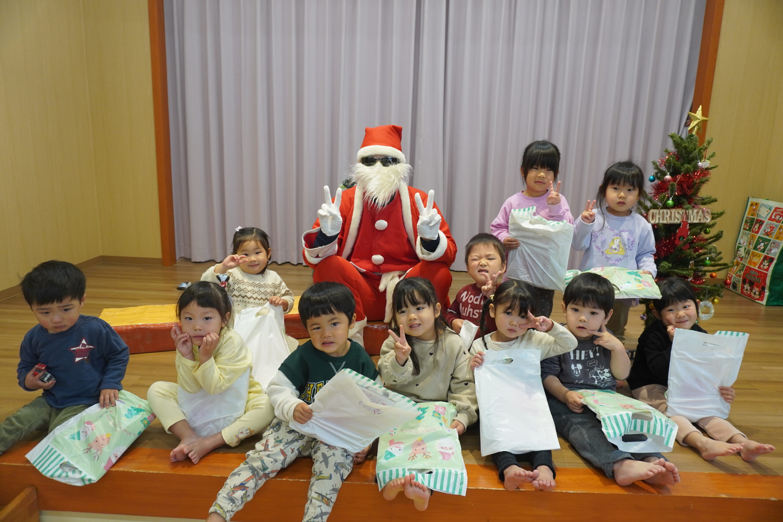 プレゼントをもらった後はサンタさんと記念撮影✨