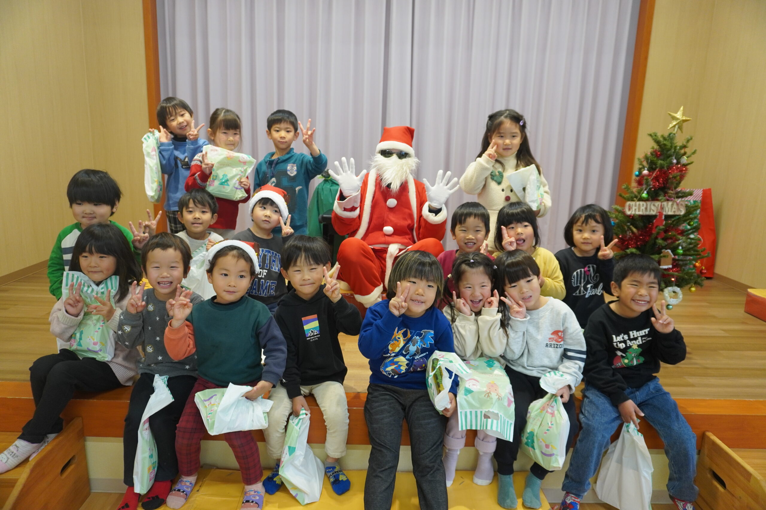 「本物のサンタさんだ」と大喜びの子どもたちです⭐