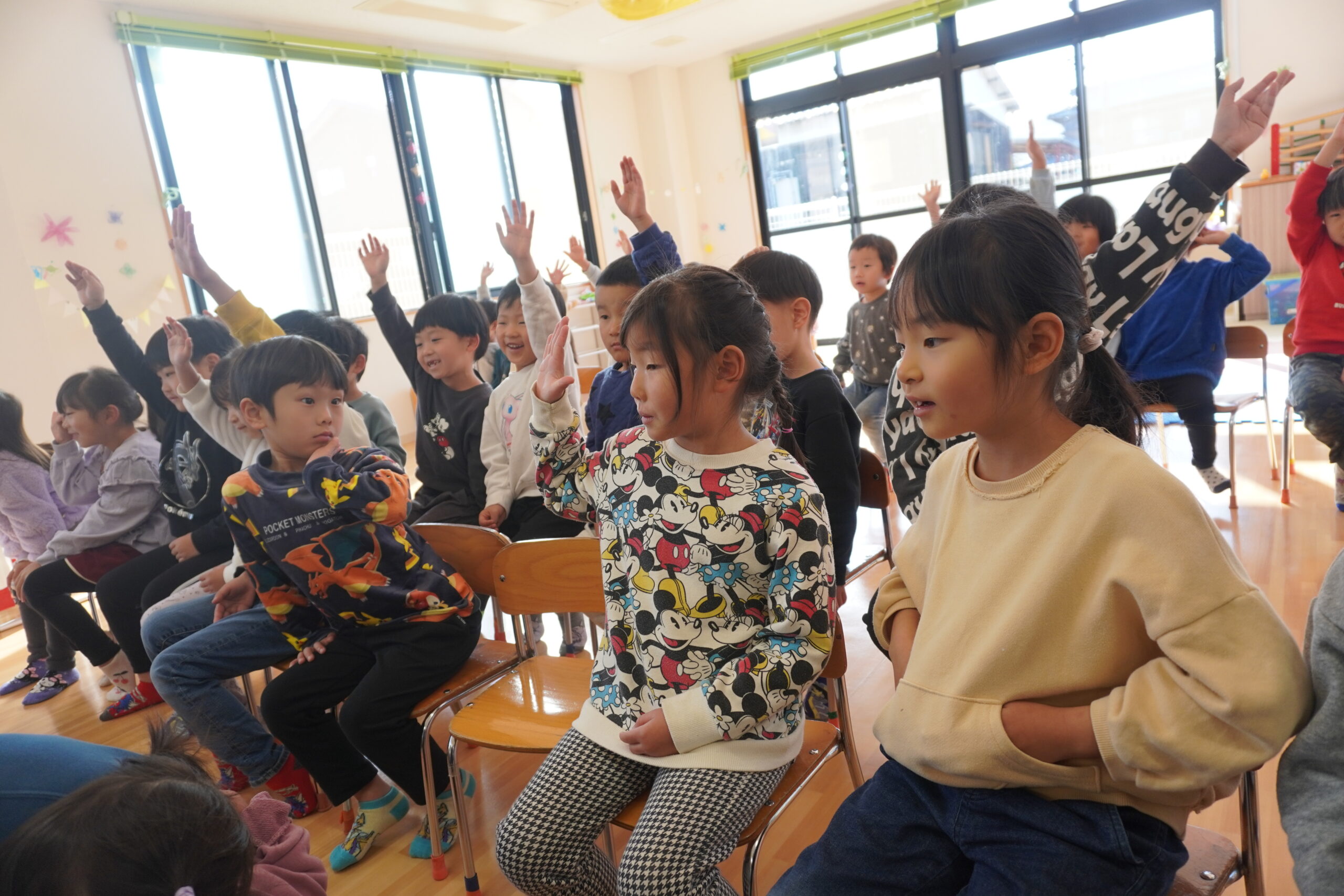 集会ではお正月についてのお話やクイズをしました。