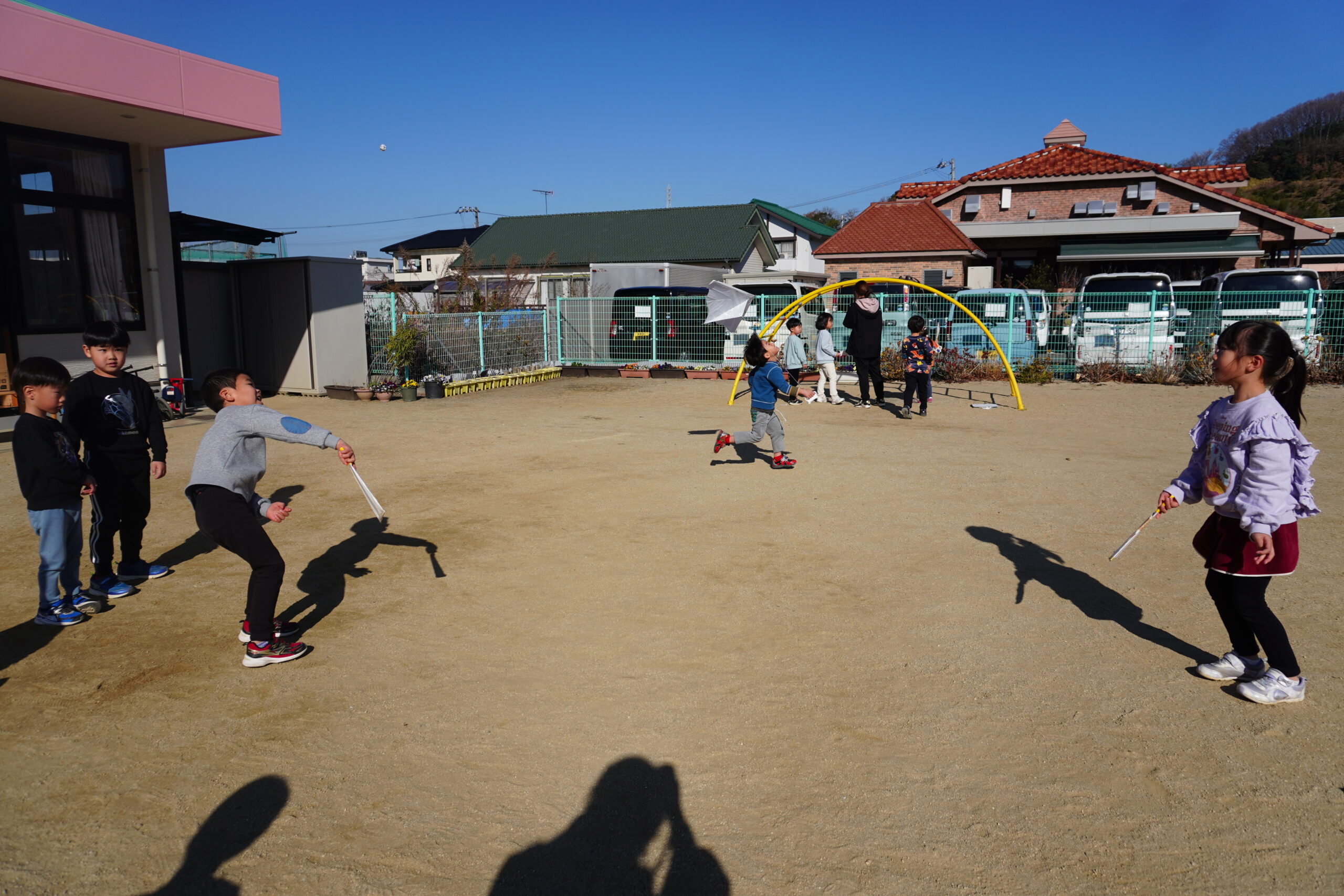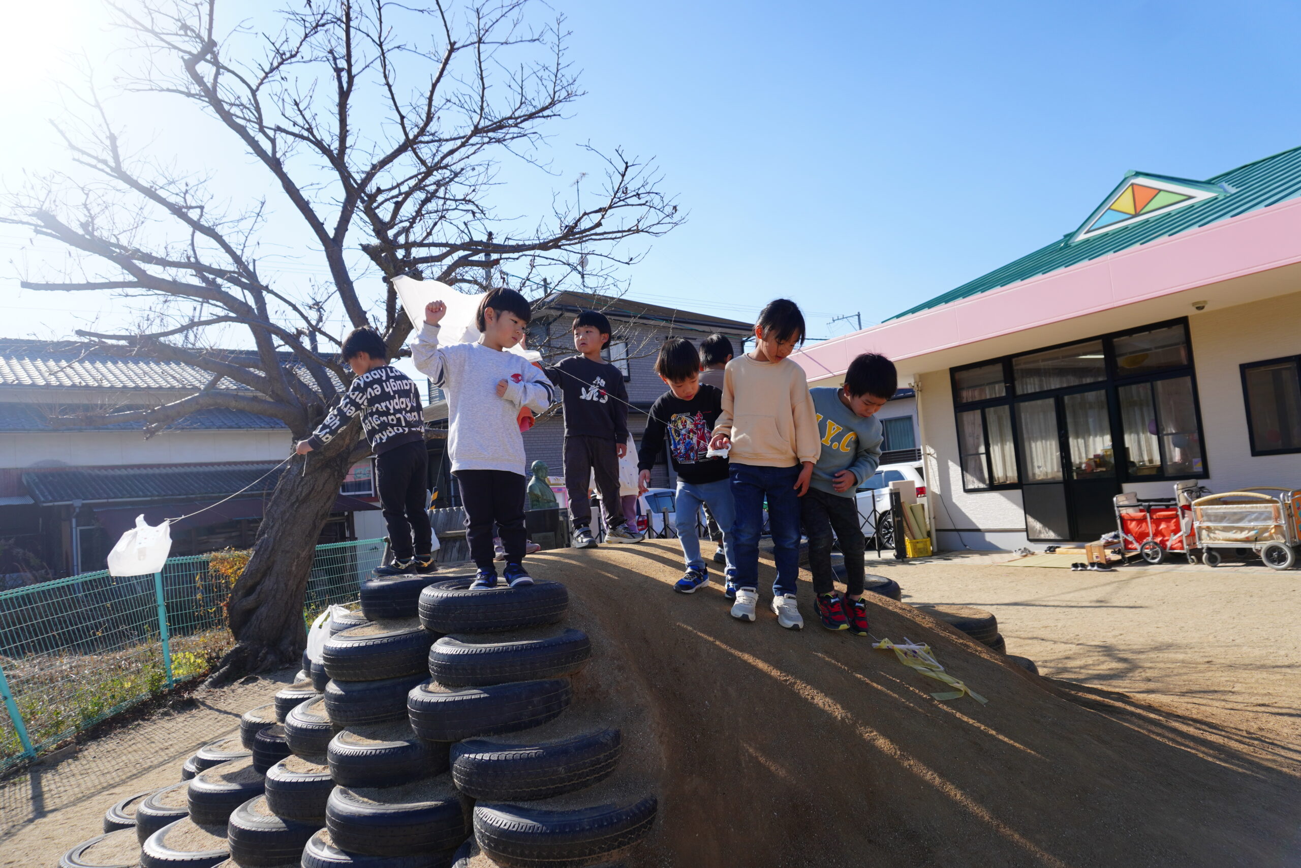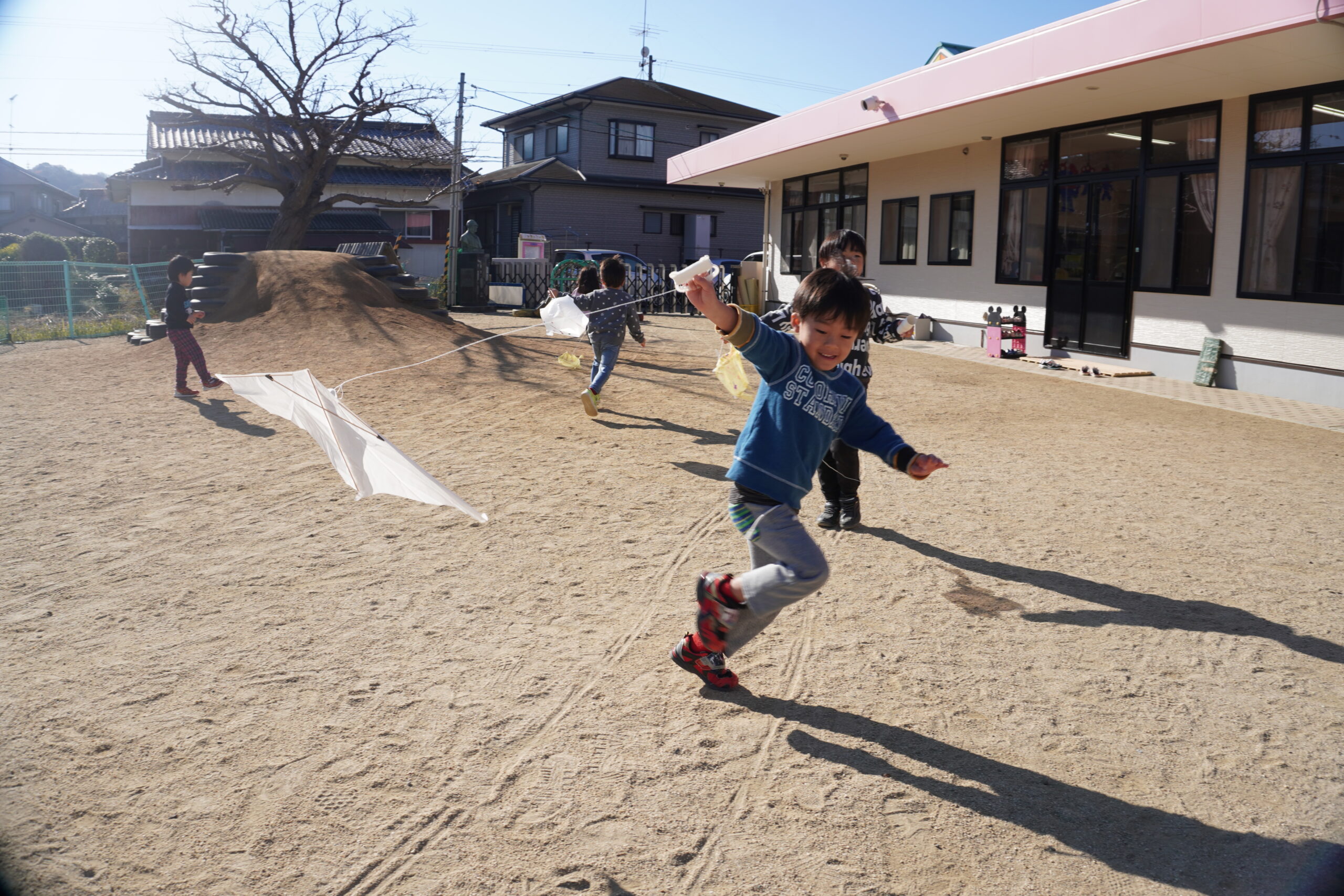 たこを高くあげられるように、園庭内を走り回ります!!!