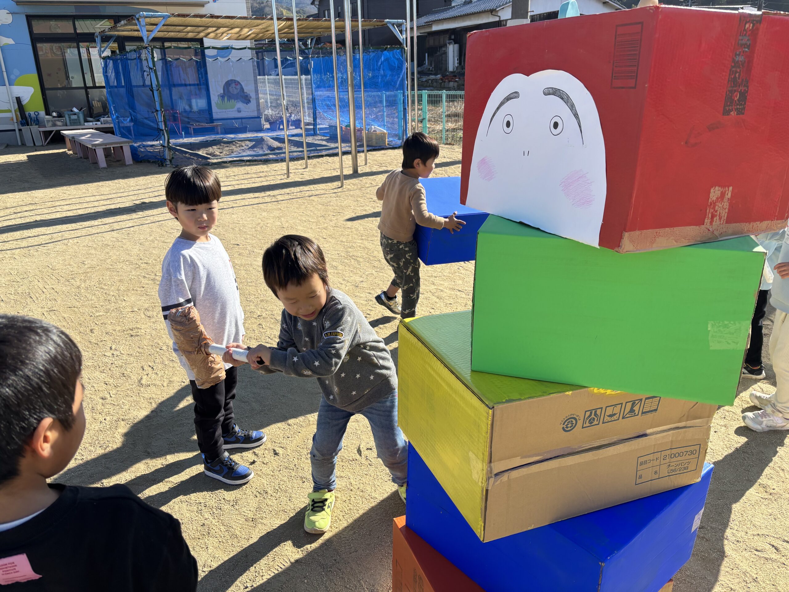 「変な顔になった~」「目が反対だよ~」と、とても楽しそうに完成させていました✨