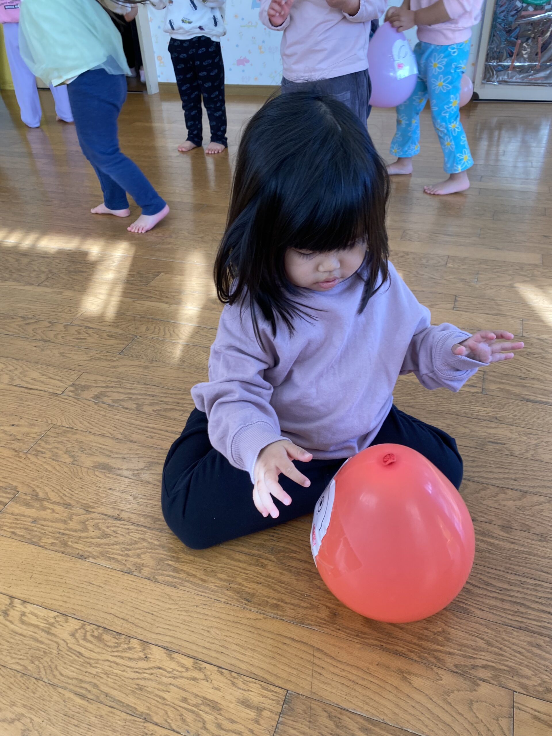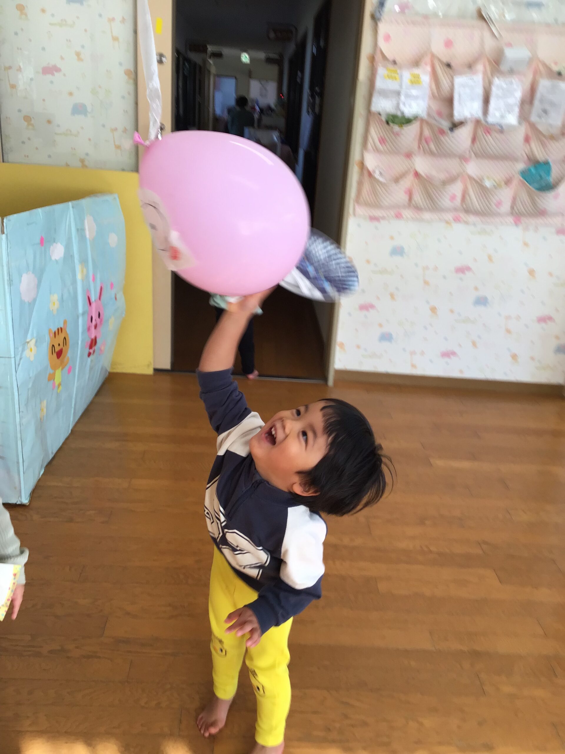 ゆらゆら動く風船を見て、不思議そうな様子です・・・・😆