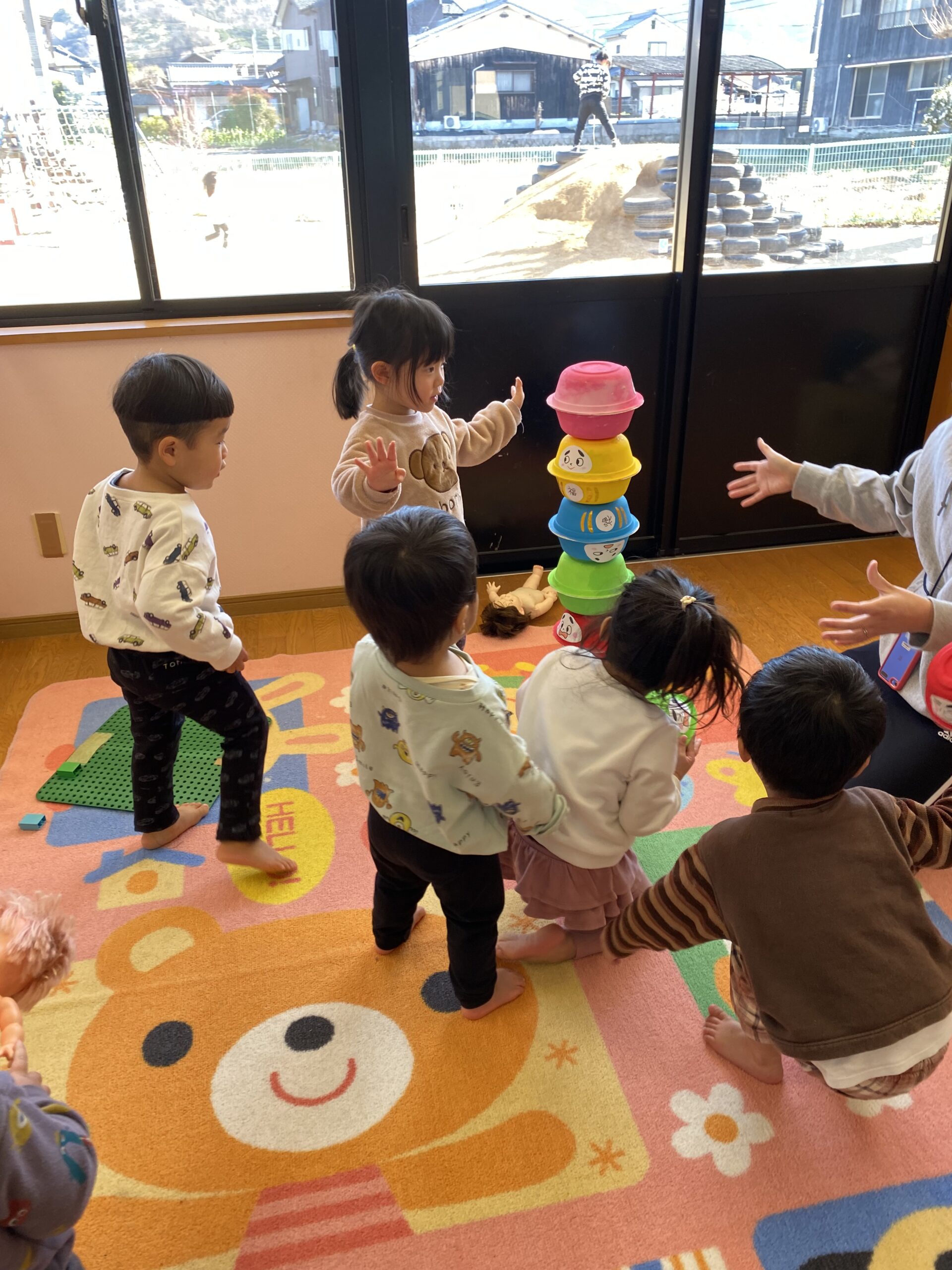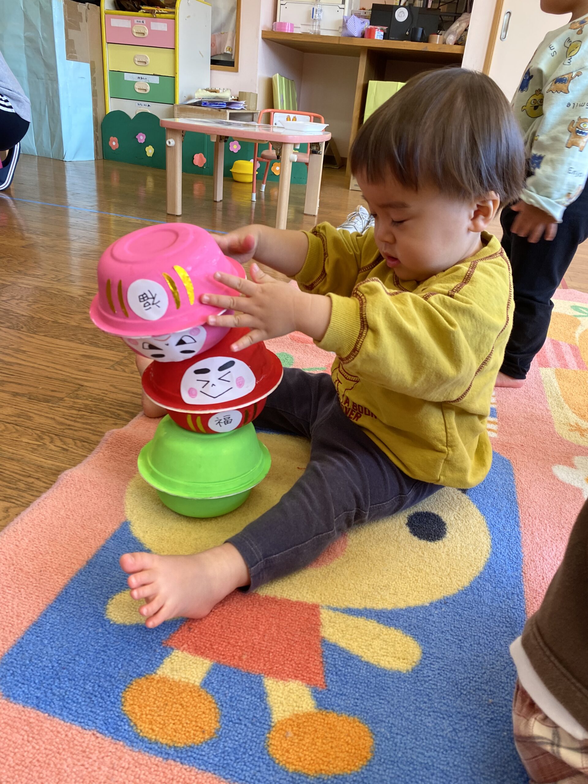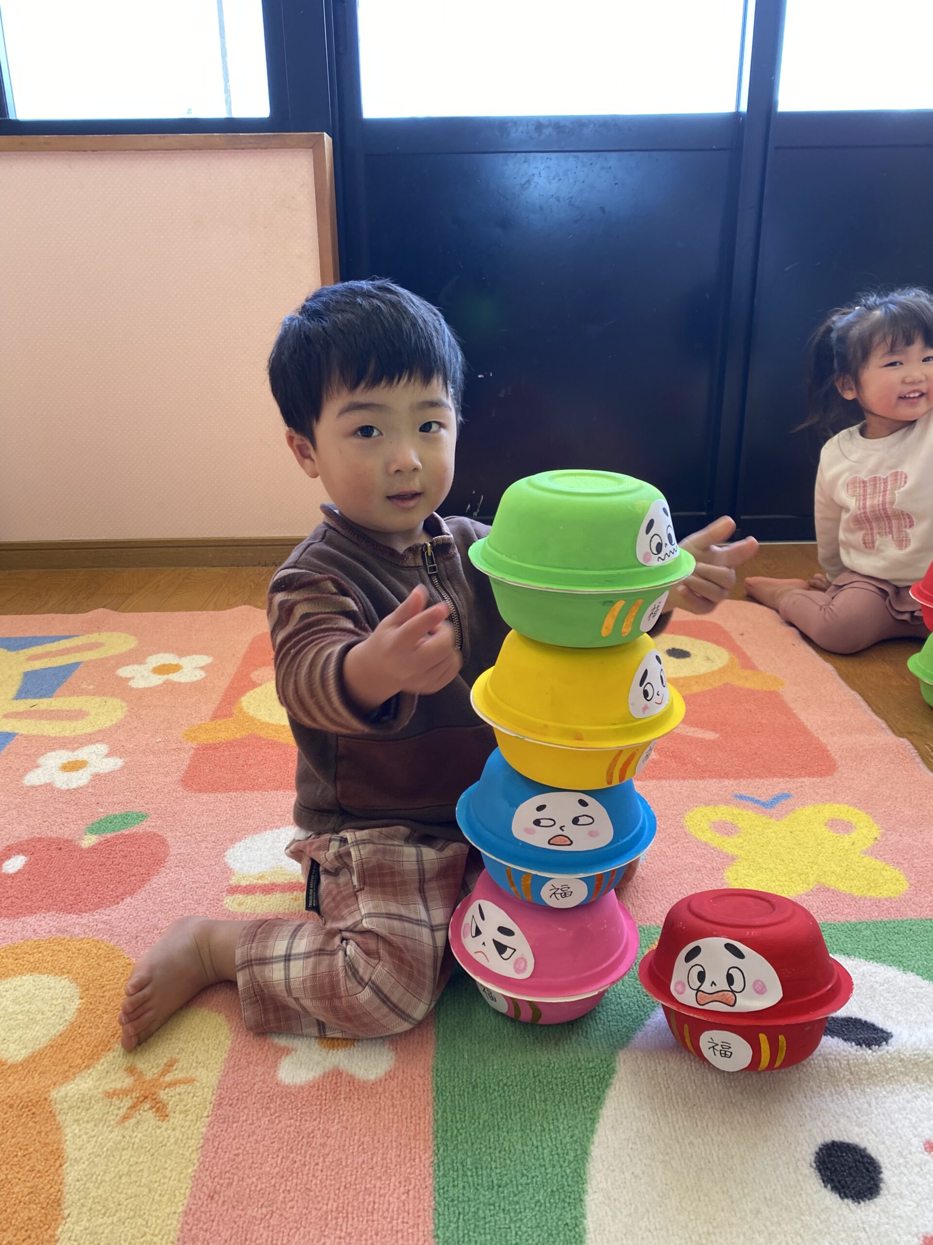 色んな色のだるまを高く積み上げれるかな~??