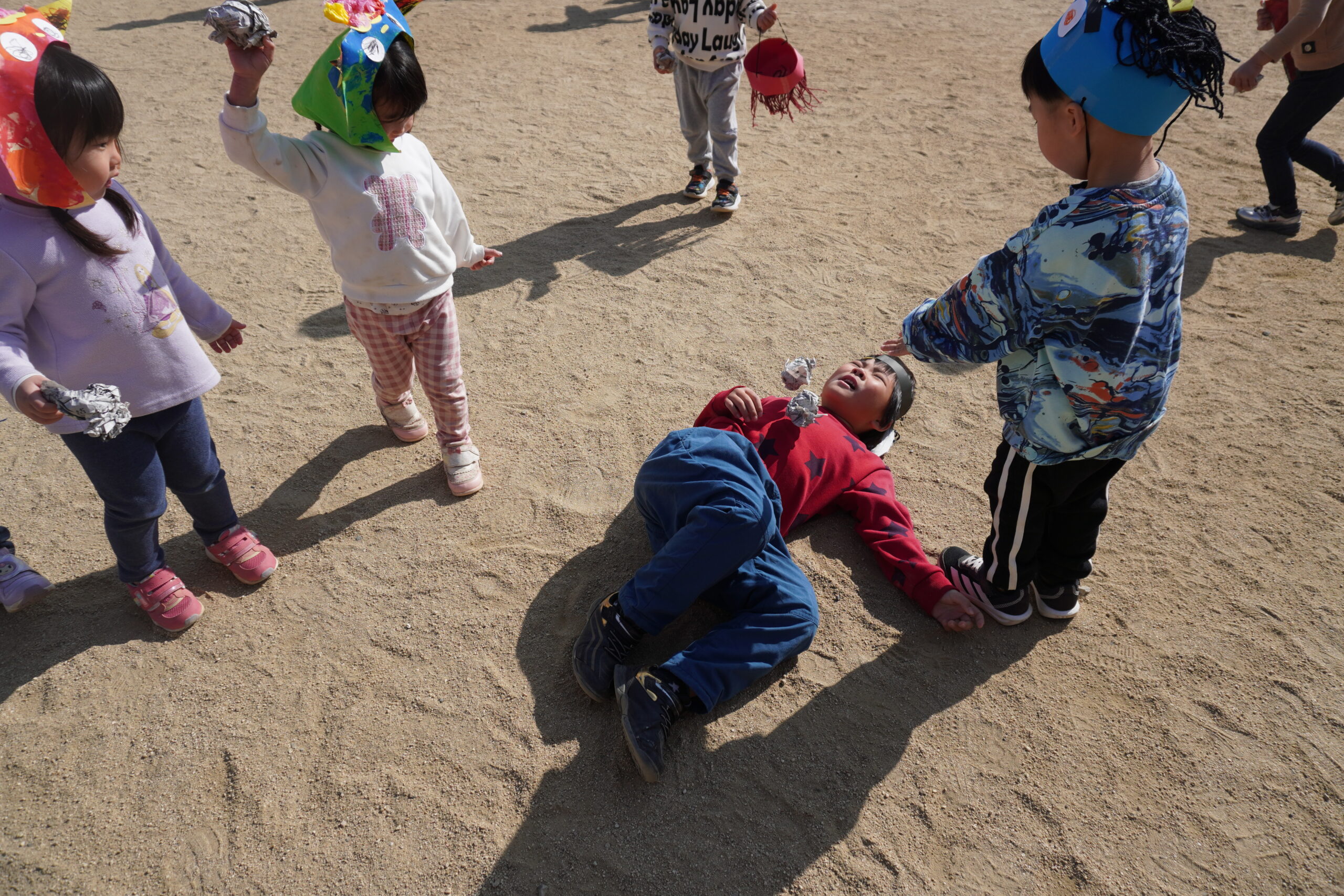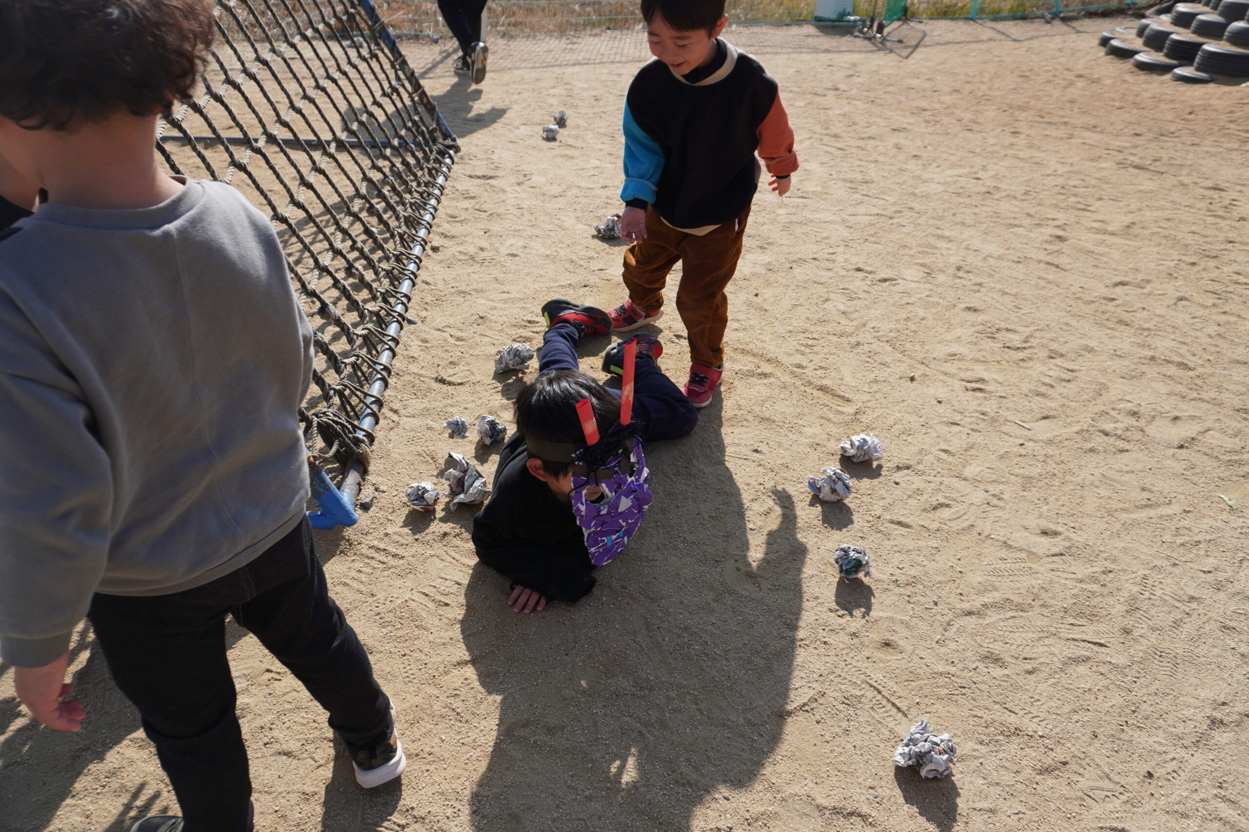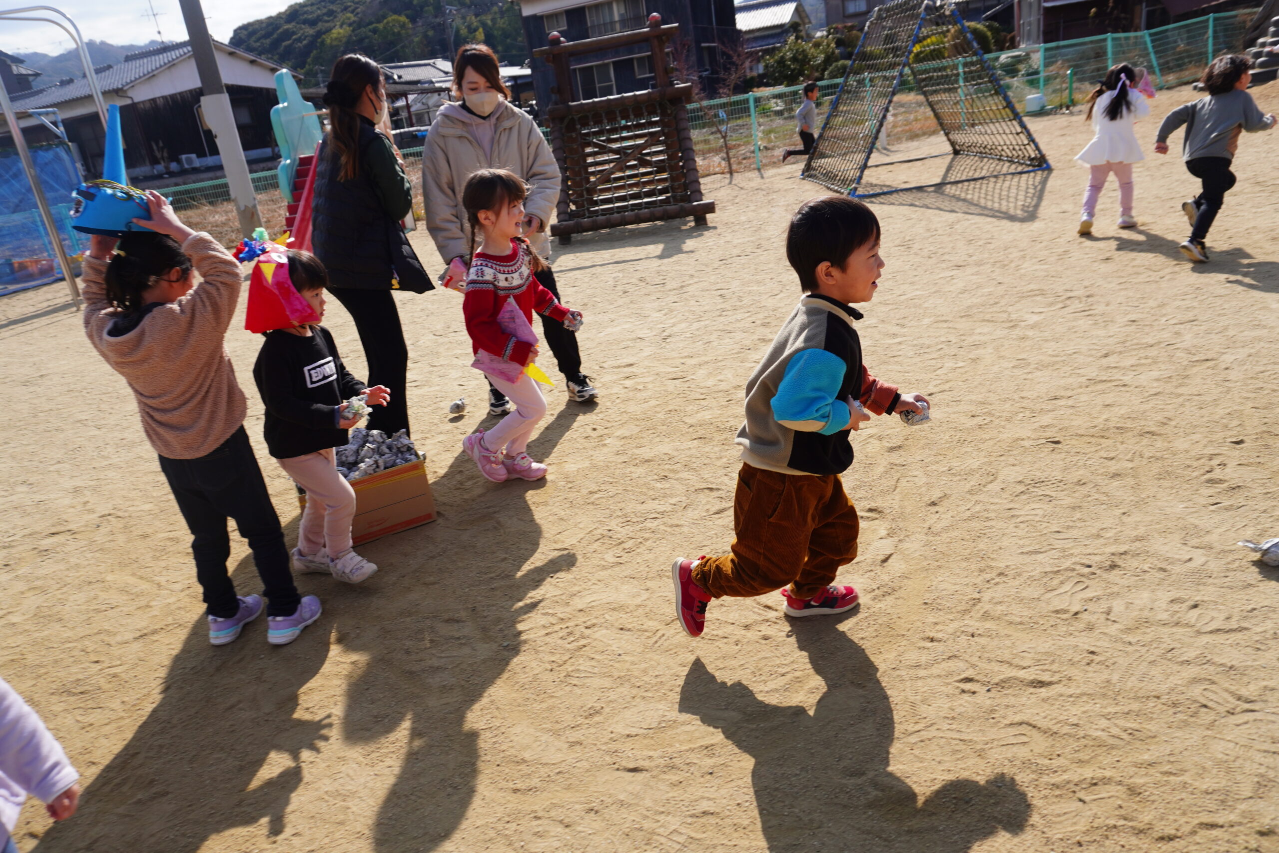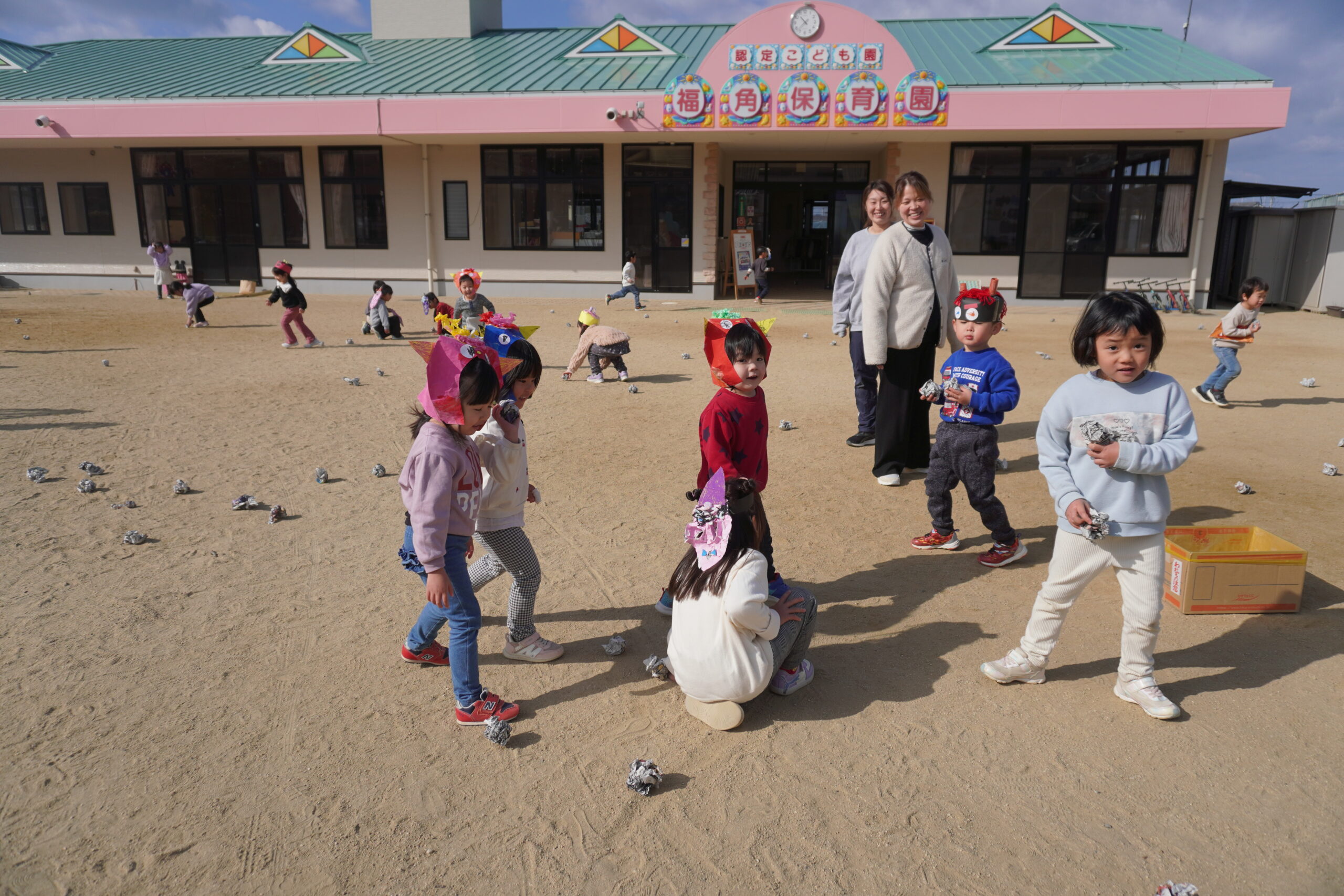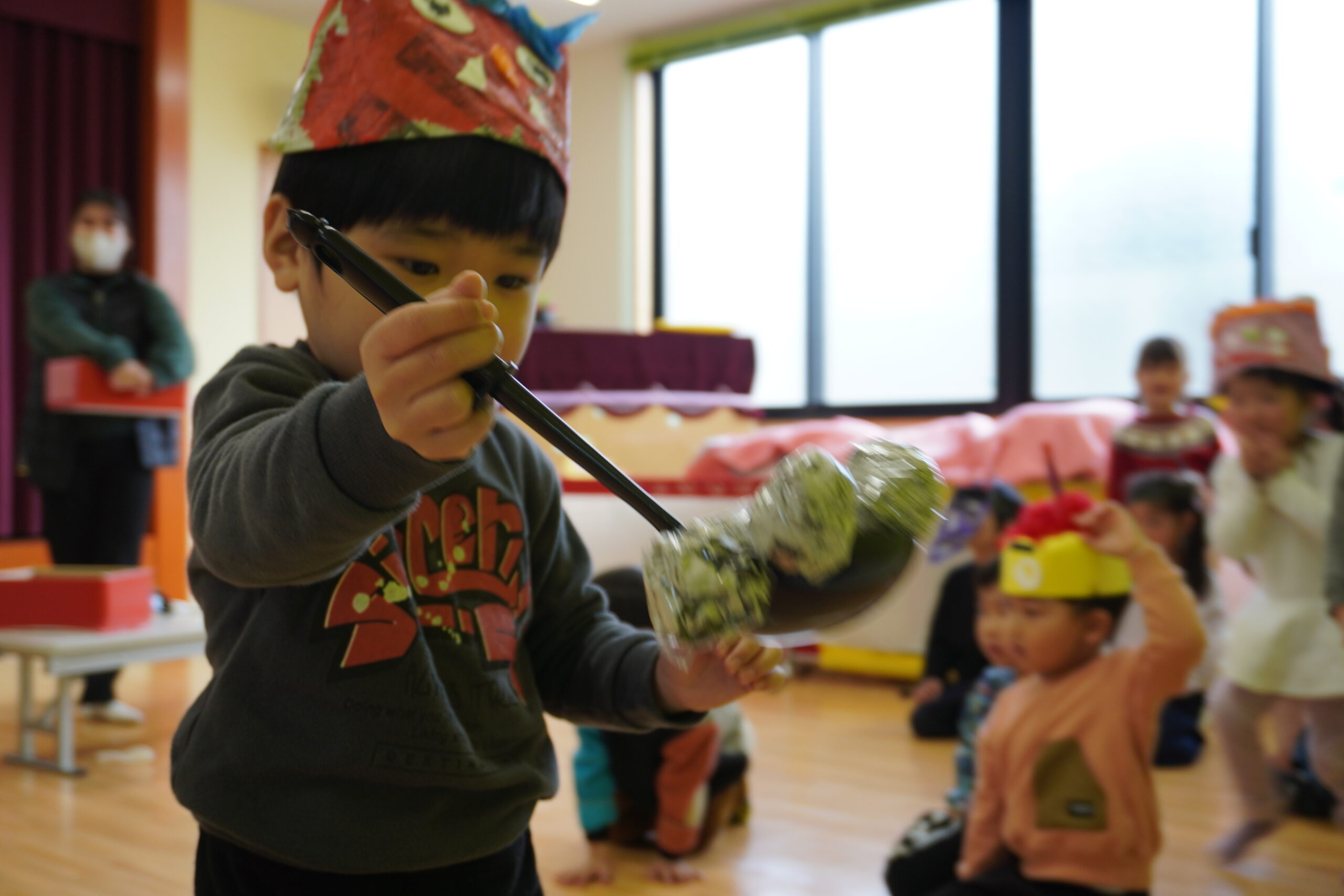鬼役もいろんなクラスのお友だちも挑戦!みんな豆が当たると上手に倒れていました😊