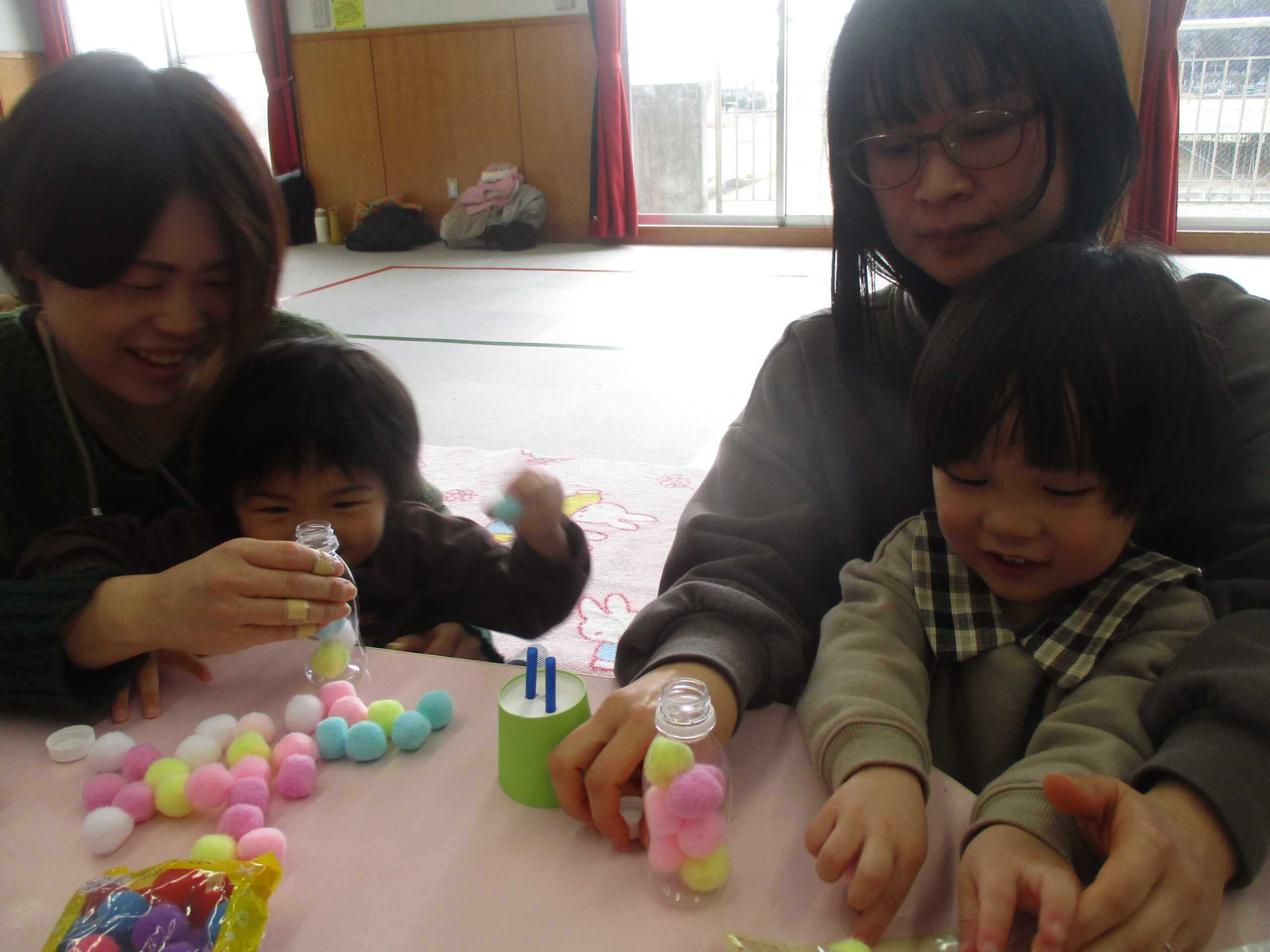 細いチューブにビーズを入れるのは少し大変でしたが、完成すると「可愛い〜💓」と嬉しい声があがりました。 シャララララ〜と転がるビーズの音も心地よくて、つい手に取りたくなるおもちゃです🌟