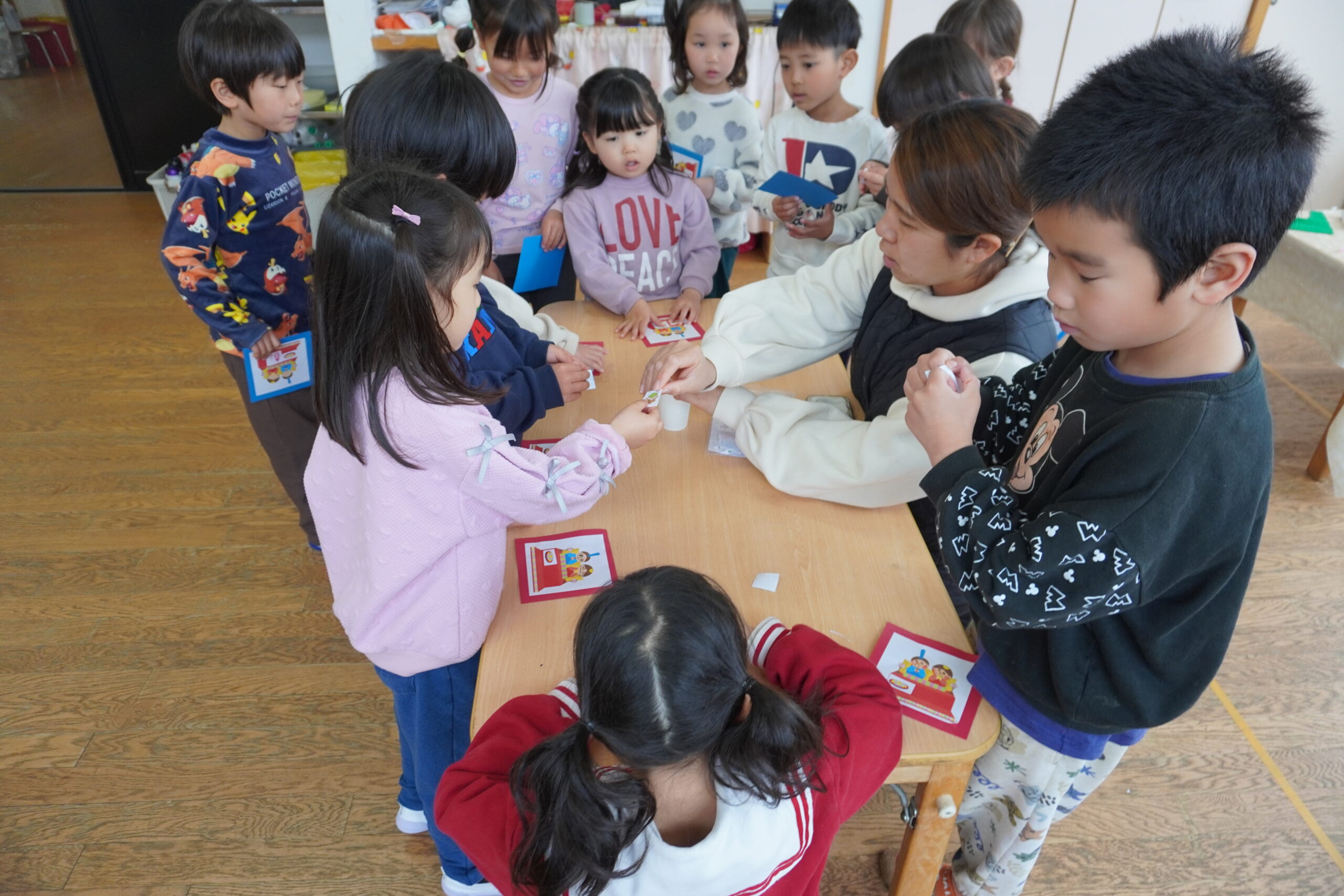 クイズに正解するとシールをもらい、カードに貼ります🌸