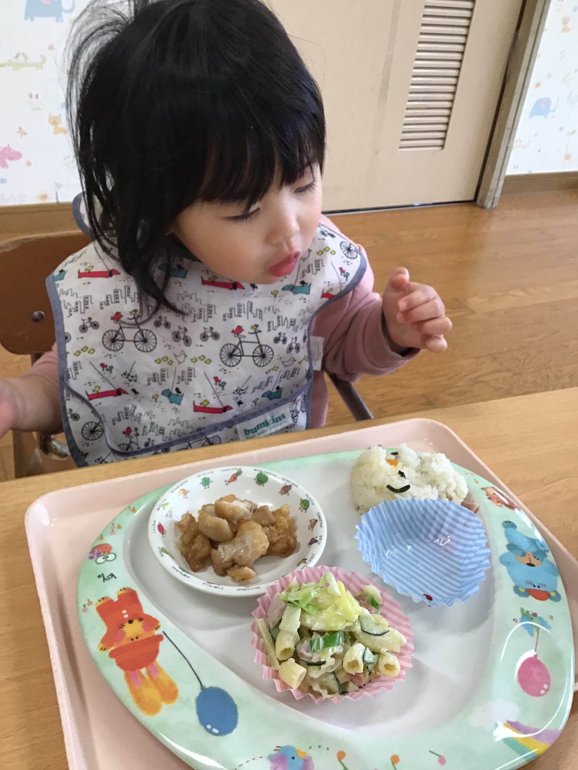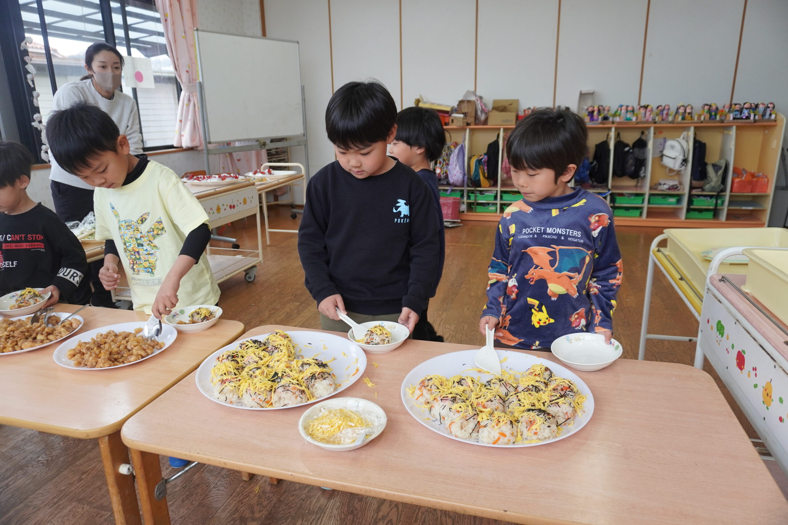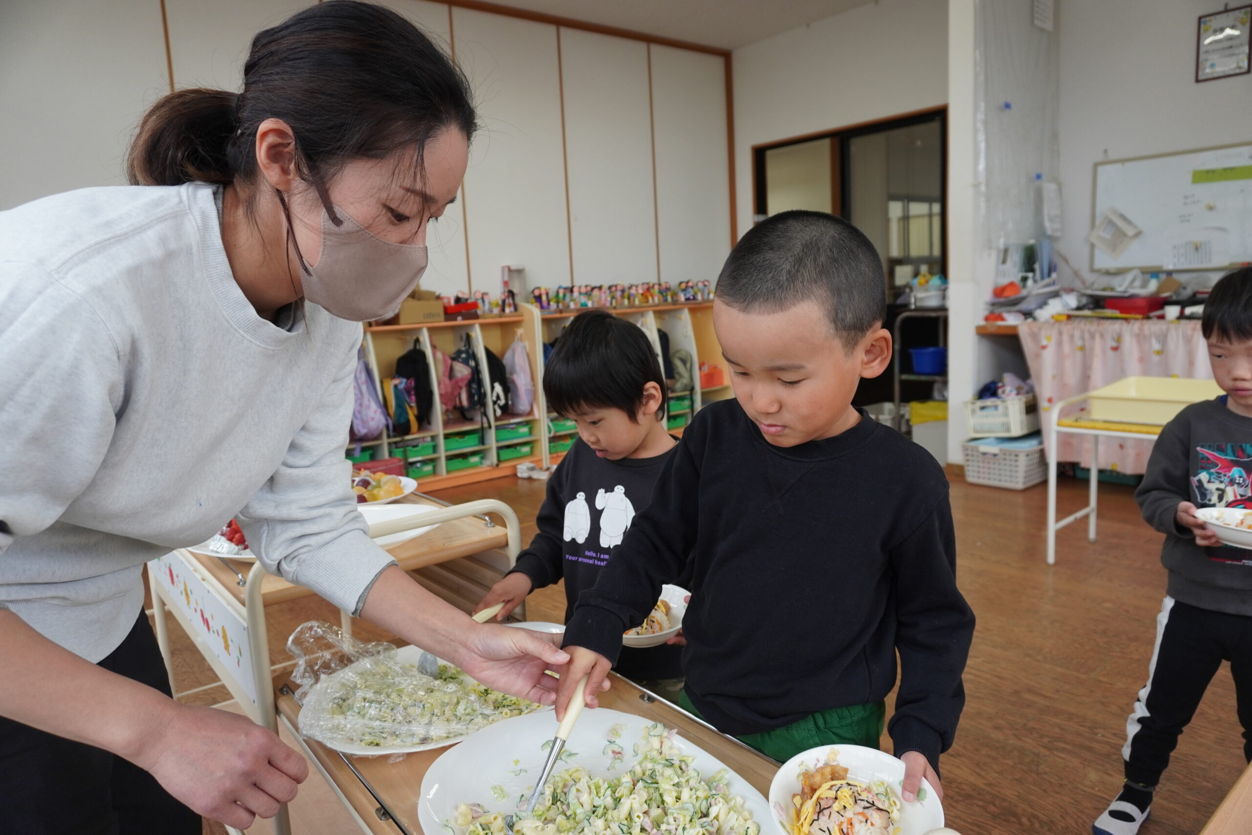 自分たちでお皿に盛りつけてみんなで食べました。おいしいし楽しい~😊