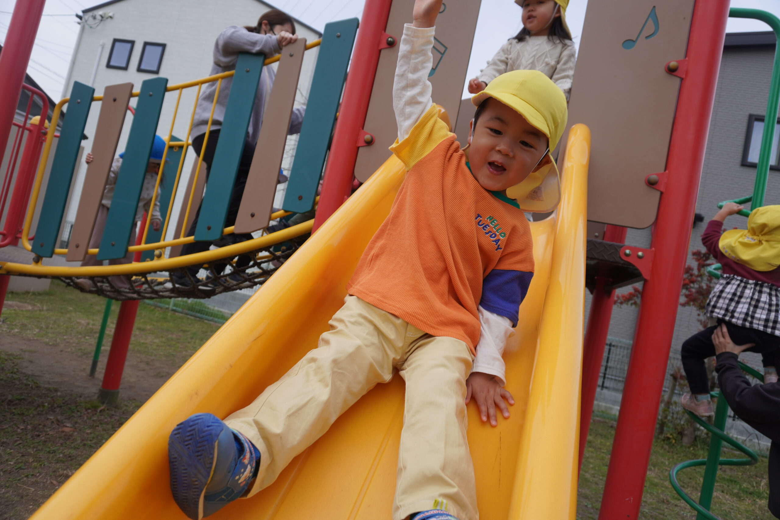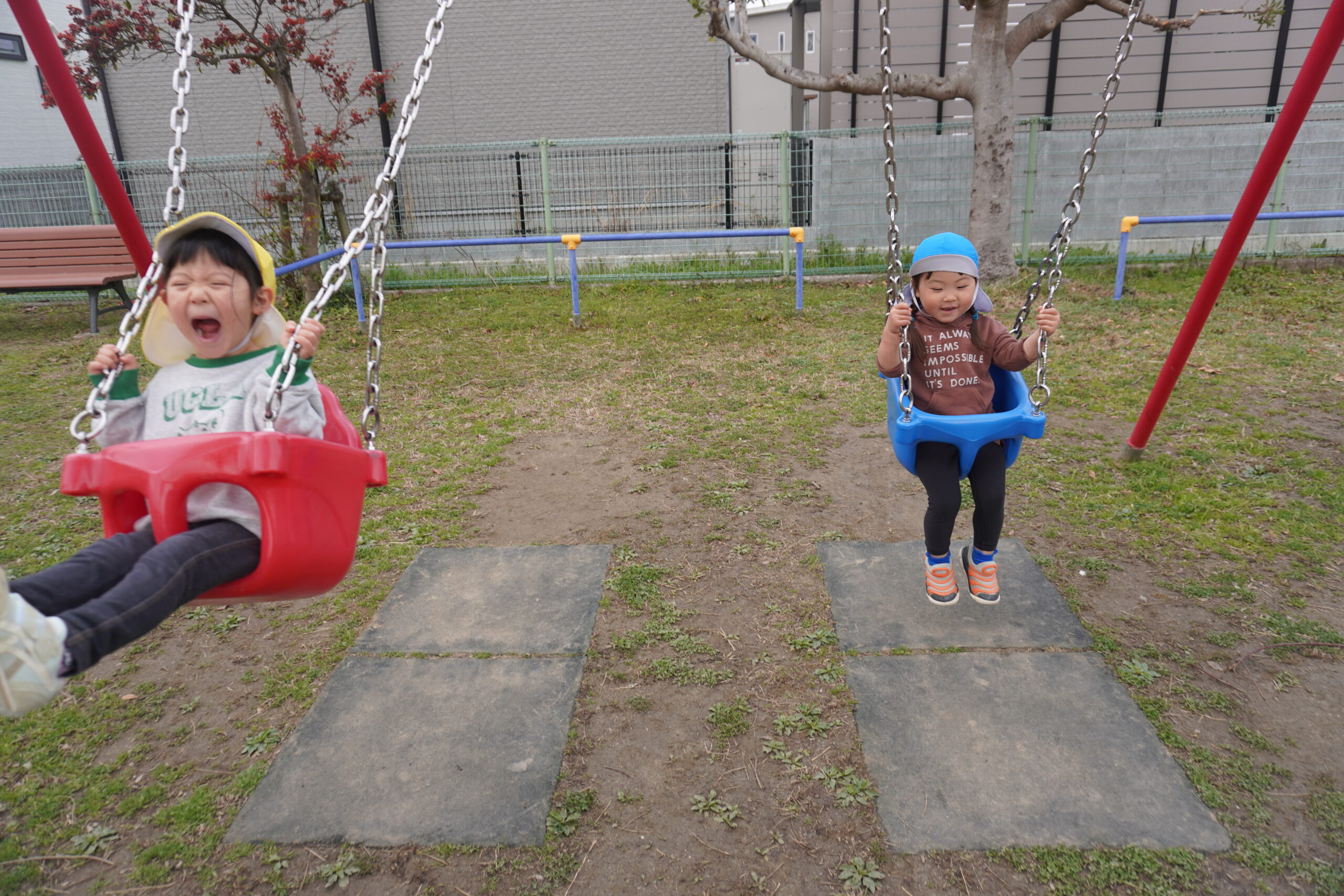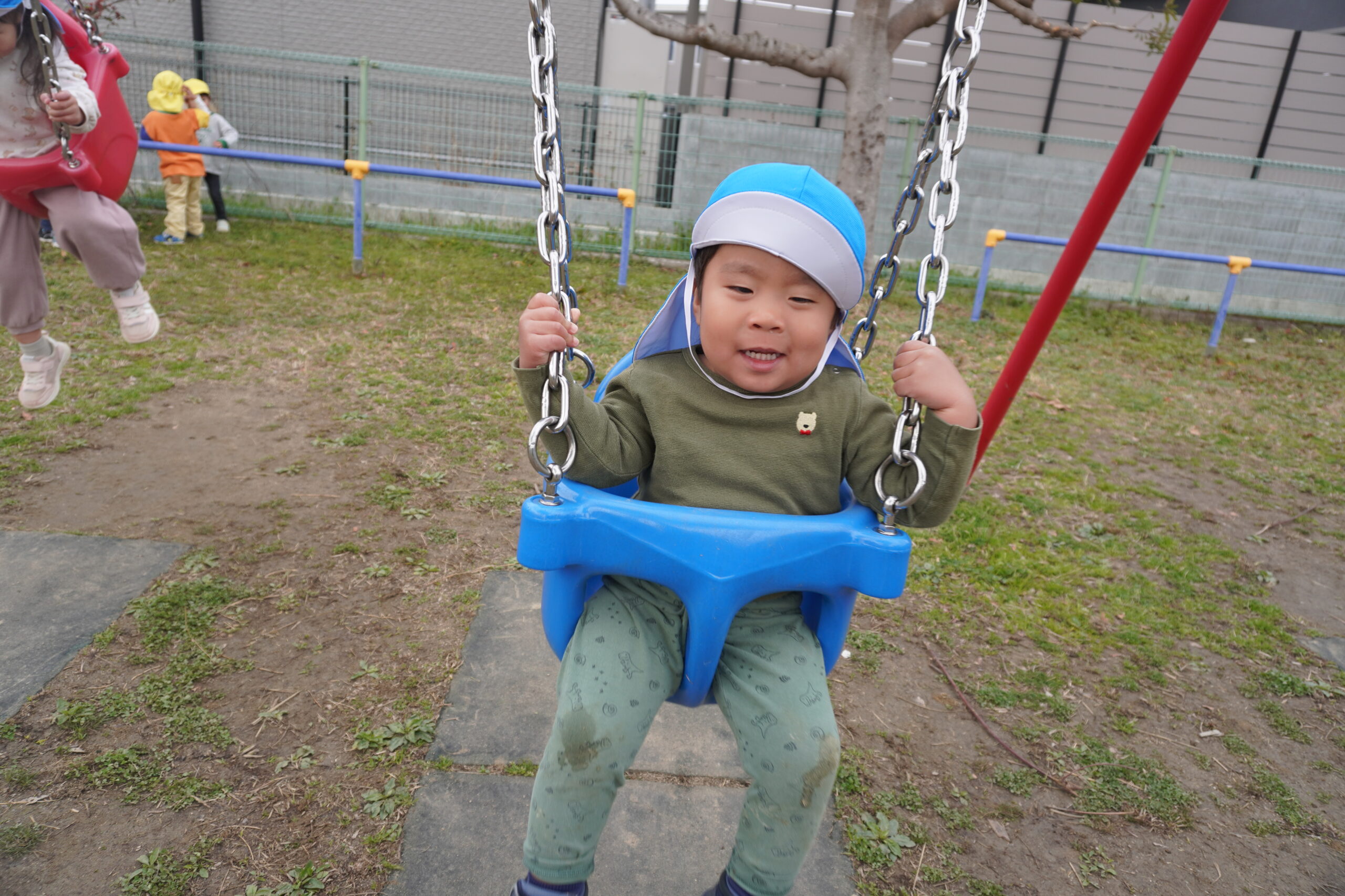 公園では、滑り台やブランコなど大きな遊具に大興奮!!!!