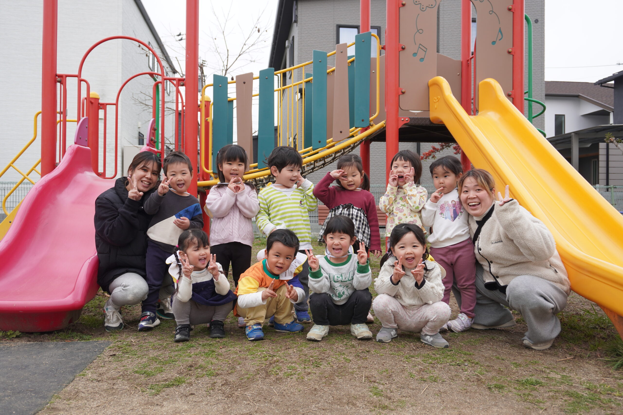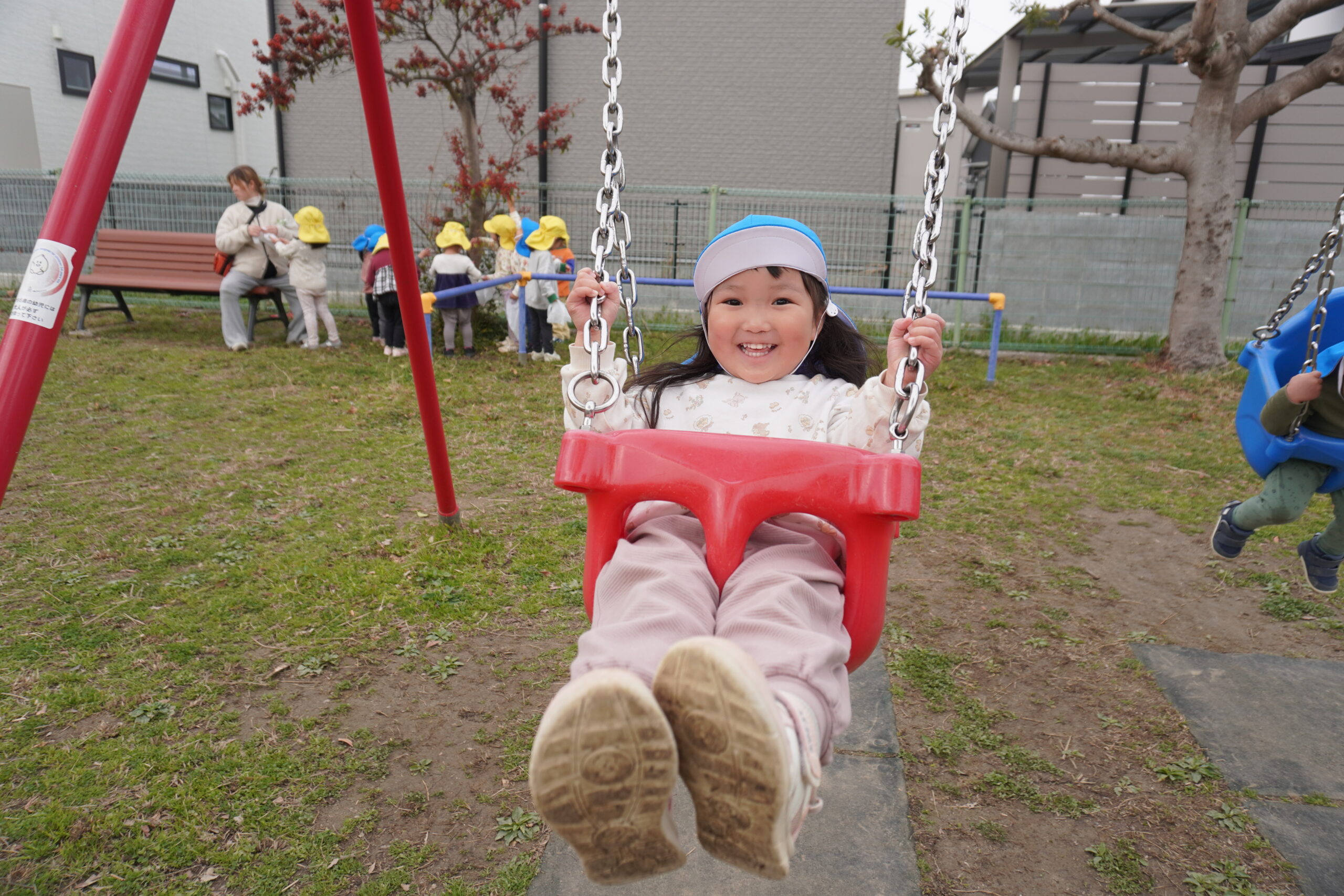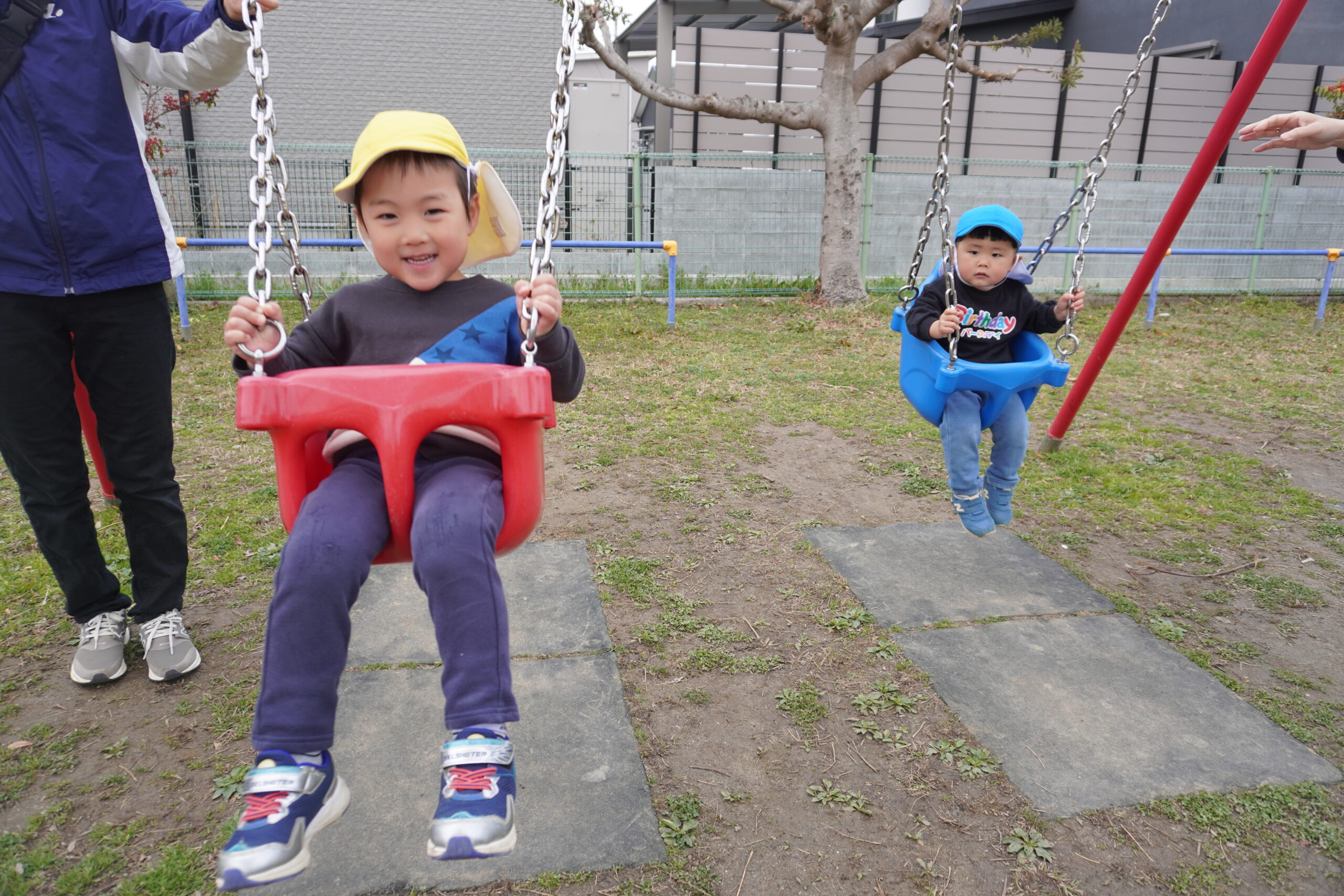 公園では、滑り台やブランコなど大きな遊具に大興奮!!!!
