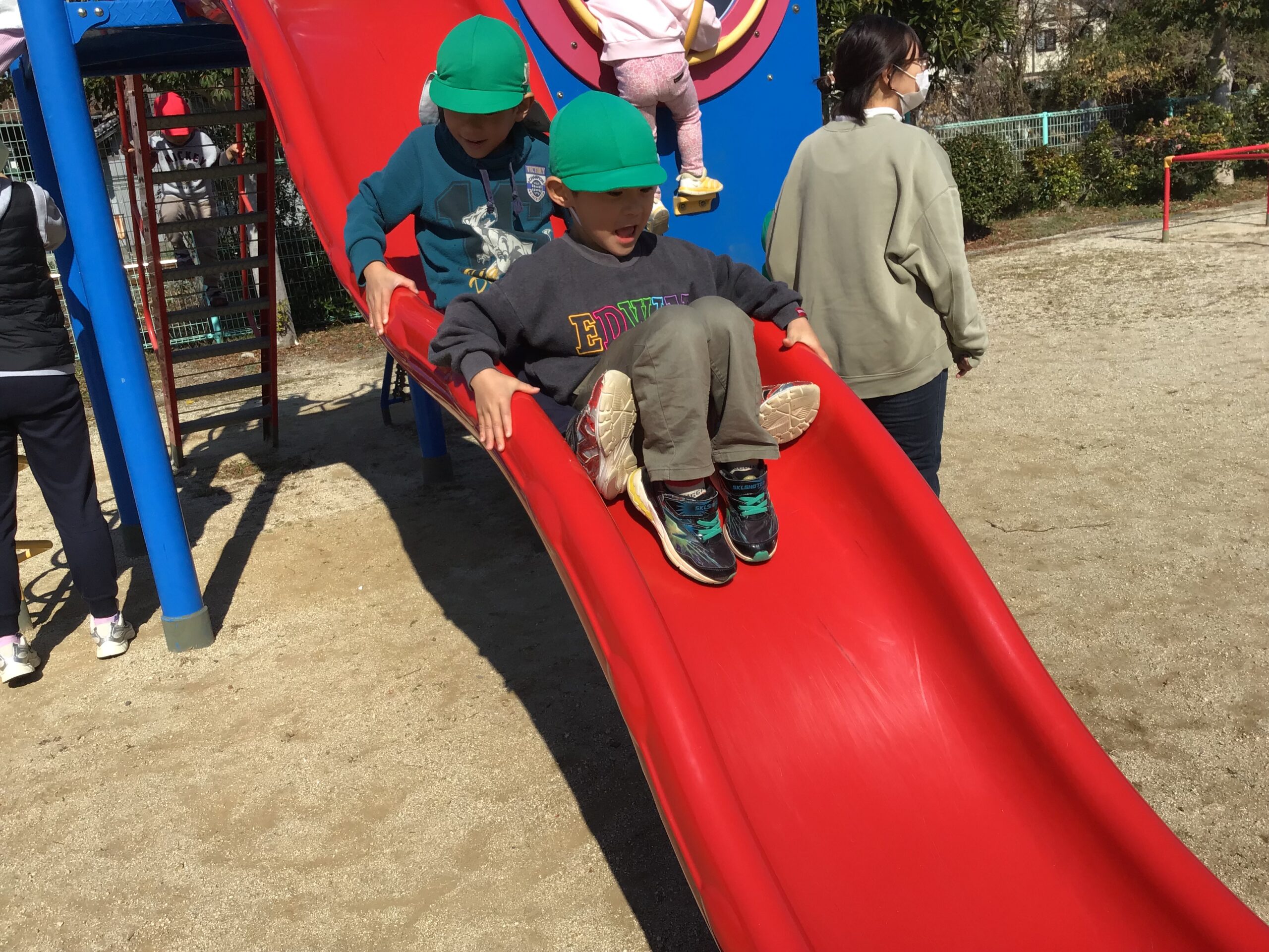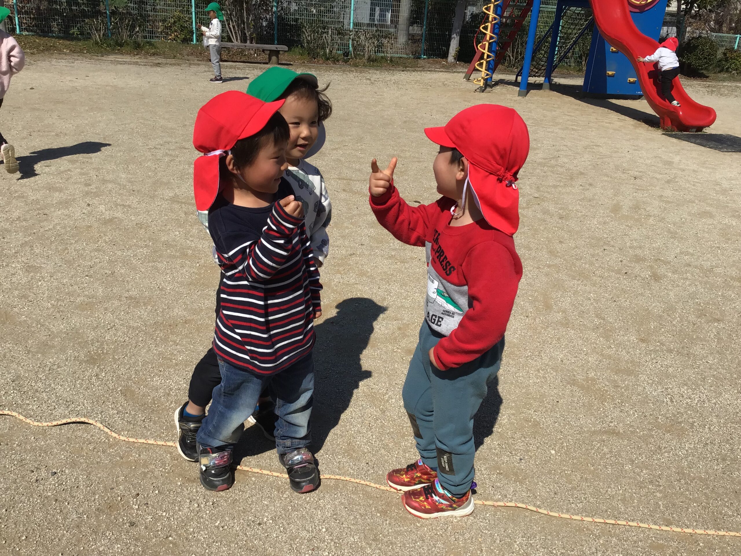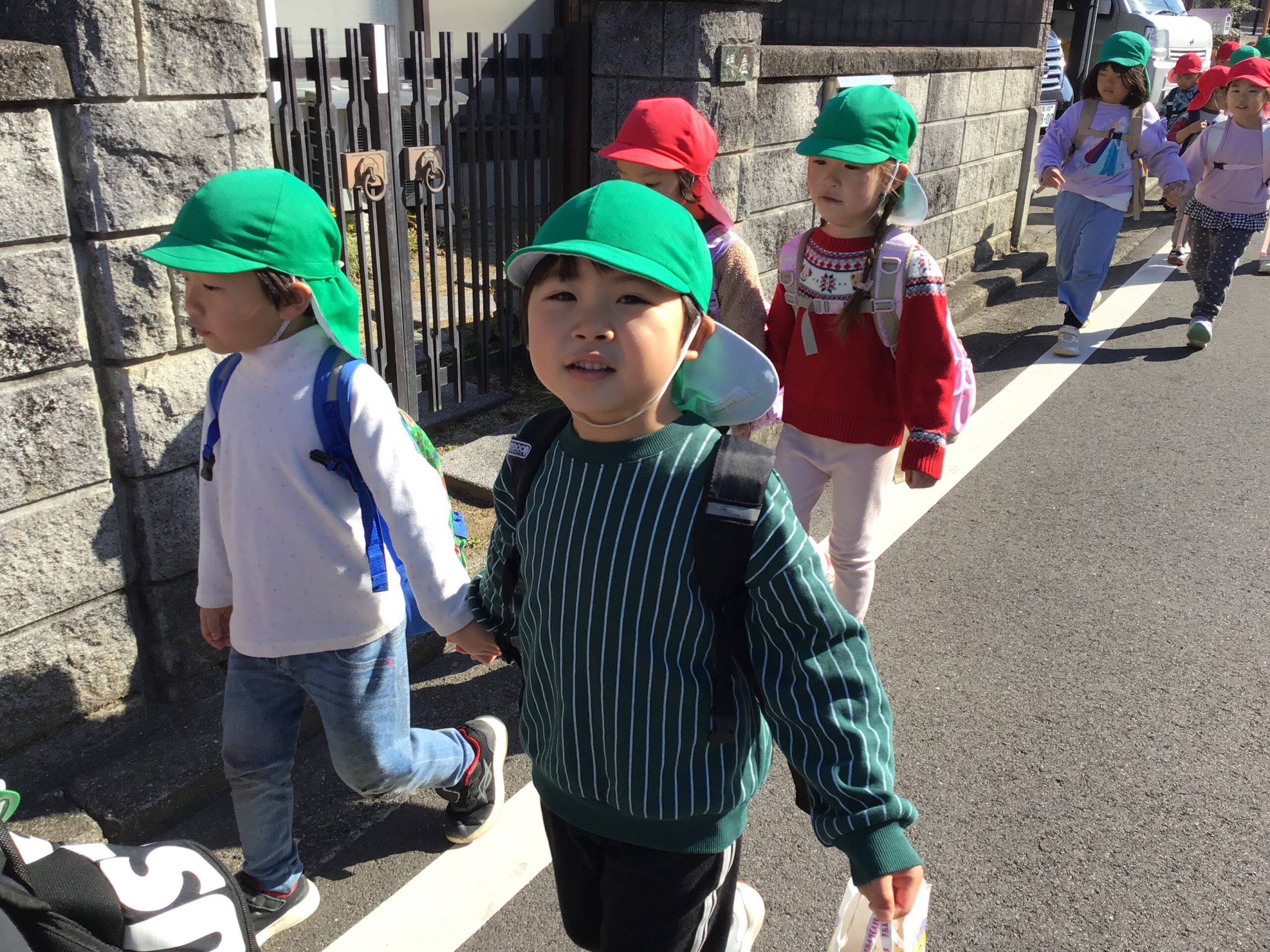 約束事を確認し、手を繋いだお友だちと教え合いながら堀江東公園まで歩きました☺️