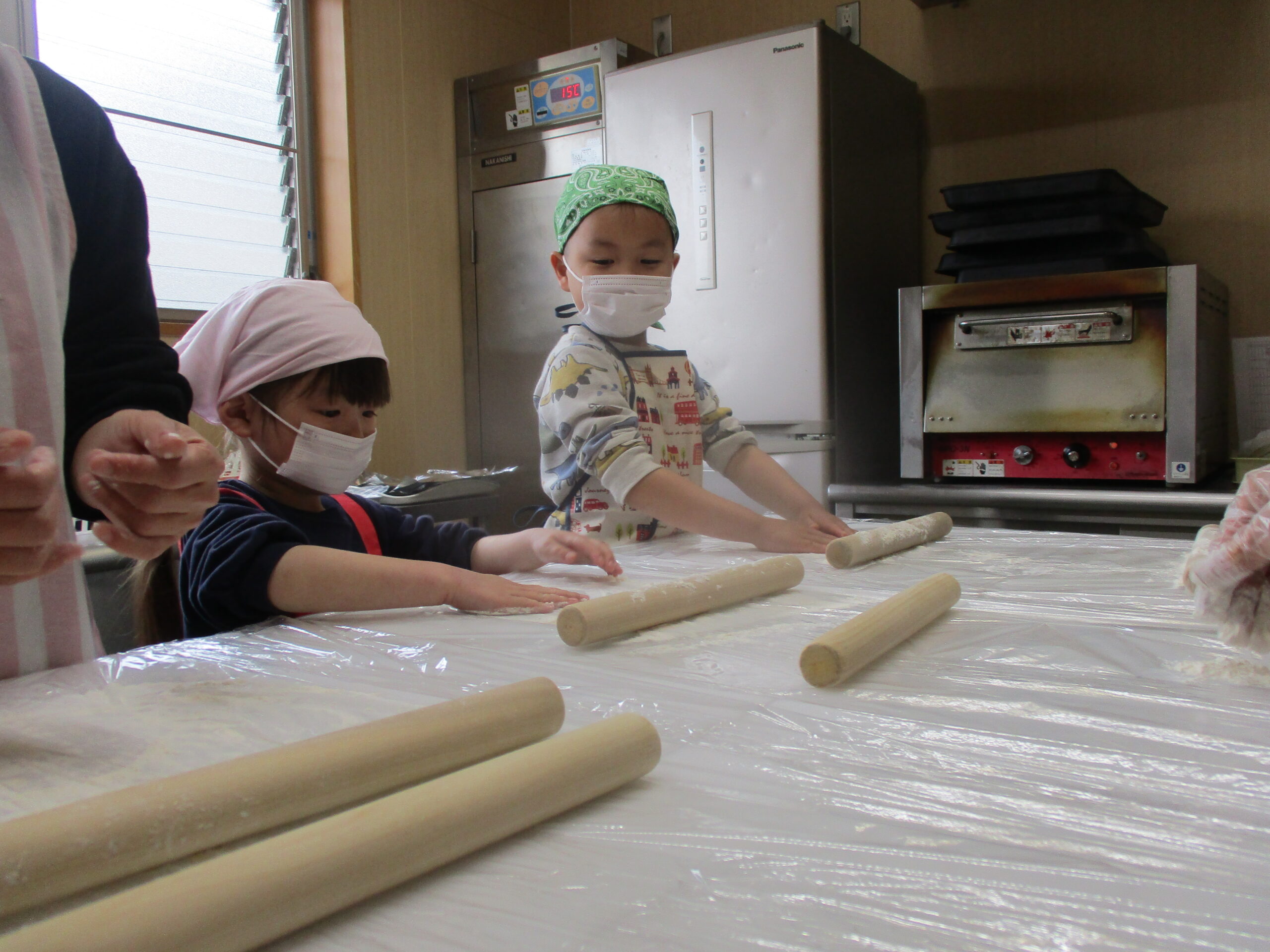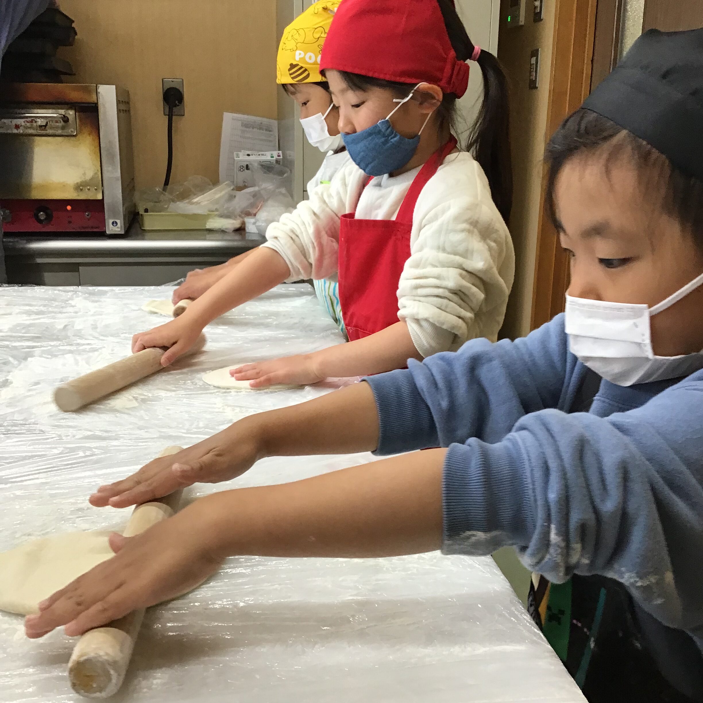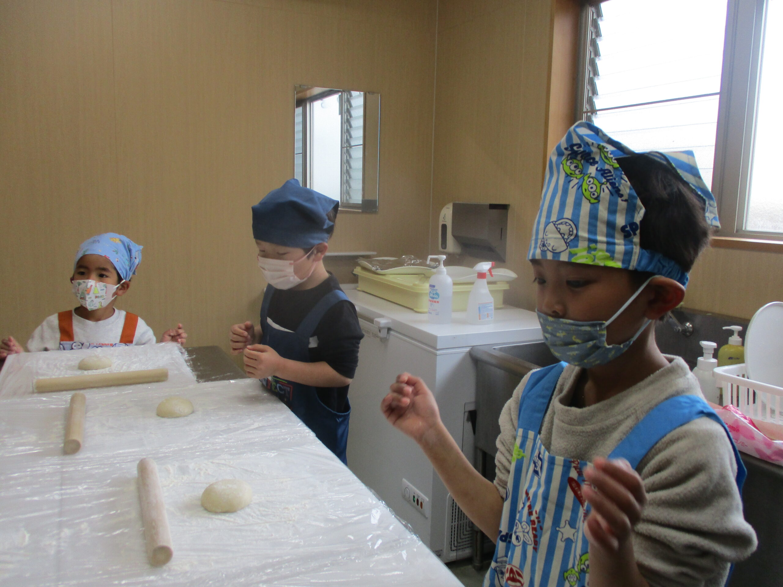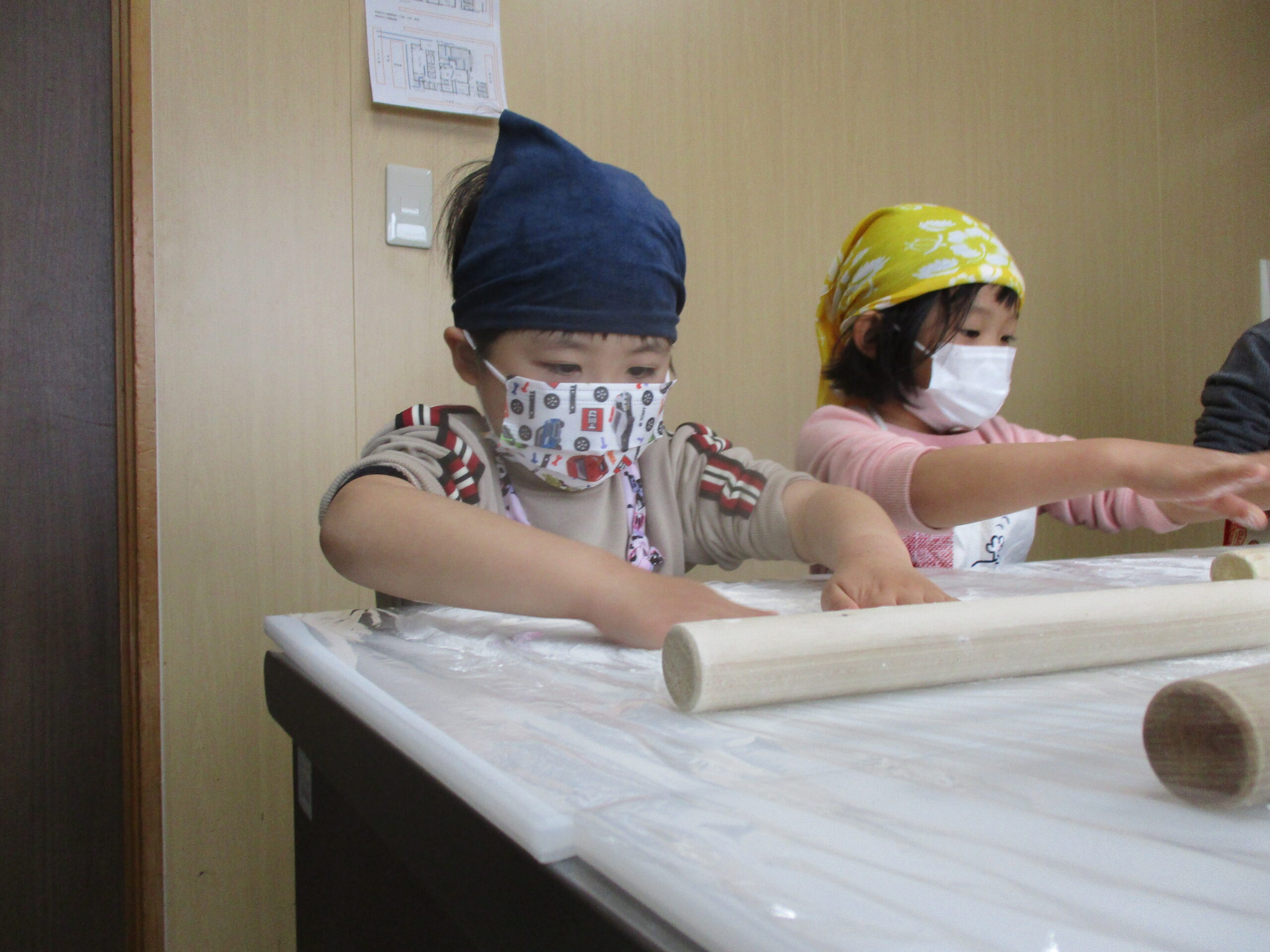 手洗いをし、生地がくっつかないように粉を台や綿棒に伸ばします☺️